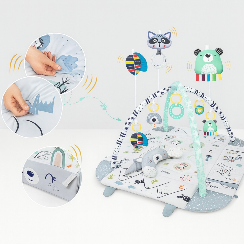 Особенности: дуги с подвесными игрушками, мягкая основа, спокойная цветовая гамма