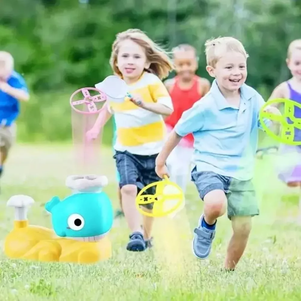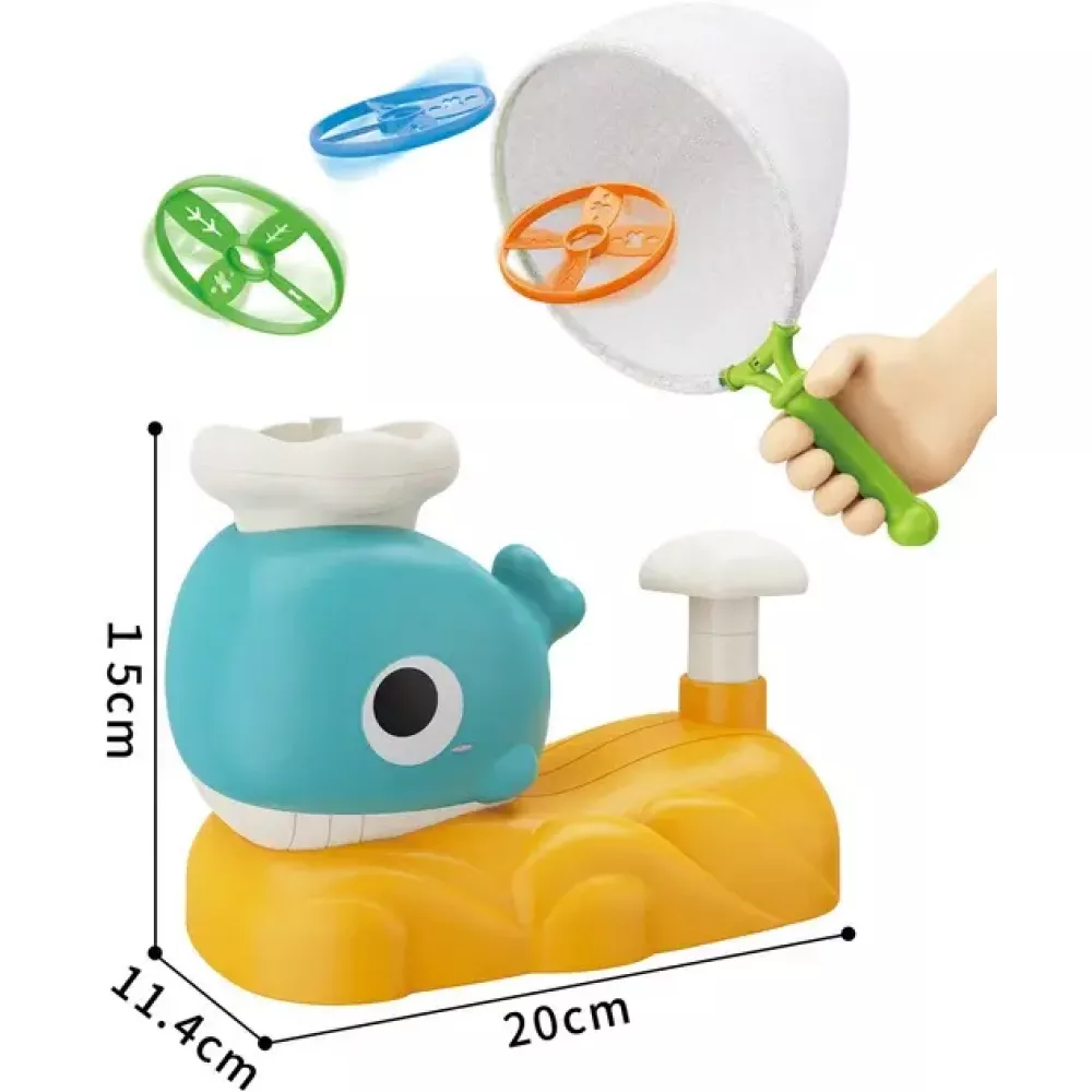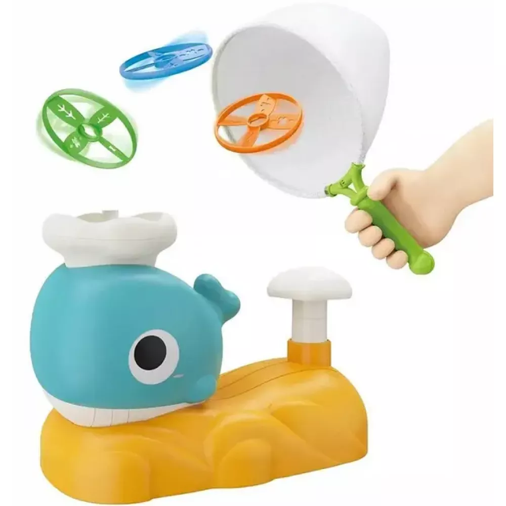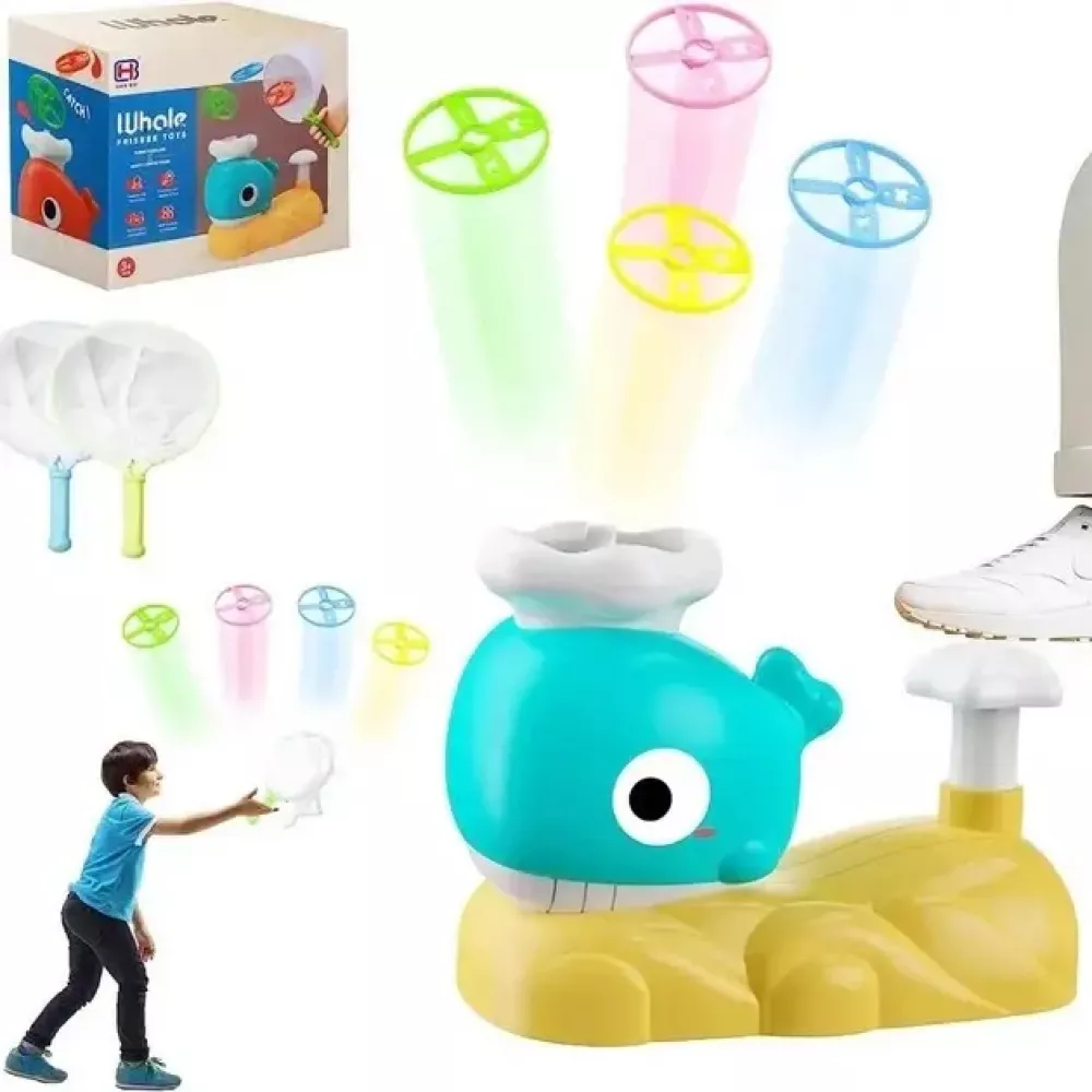Помещая диск на спину кита и нажимая педаль, вы запускаете взлетающую в воздух игрушку. Летающую тарелку можно поймать с помощью специального сачка. Существуют разные варианты игры, и вы можете наслаждаться игрой с друзьями и даже с домашними животными. Эта игрушка создает веселую атмосферу на свежем воздухе и способствует развитию командного духа.