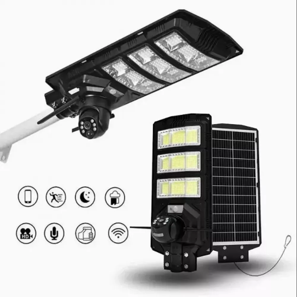 Повышайте безопасность и освещение вашего дома или бизнеса с нашим инновационным уличным фонарем с камерой видеонаблюдения на солнечной панели 300W с датчиком движения V380pro. Этот передовой прибор сочетает в себе мощное освещение, высококачественную видеосъемку и умные функции для максимальной удобства и безопасности.