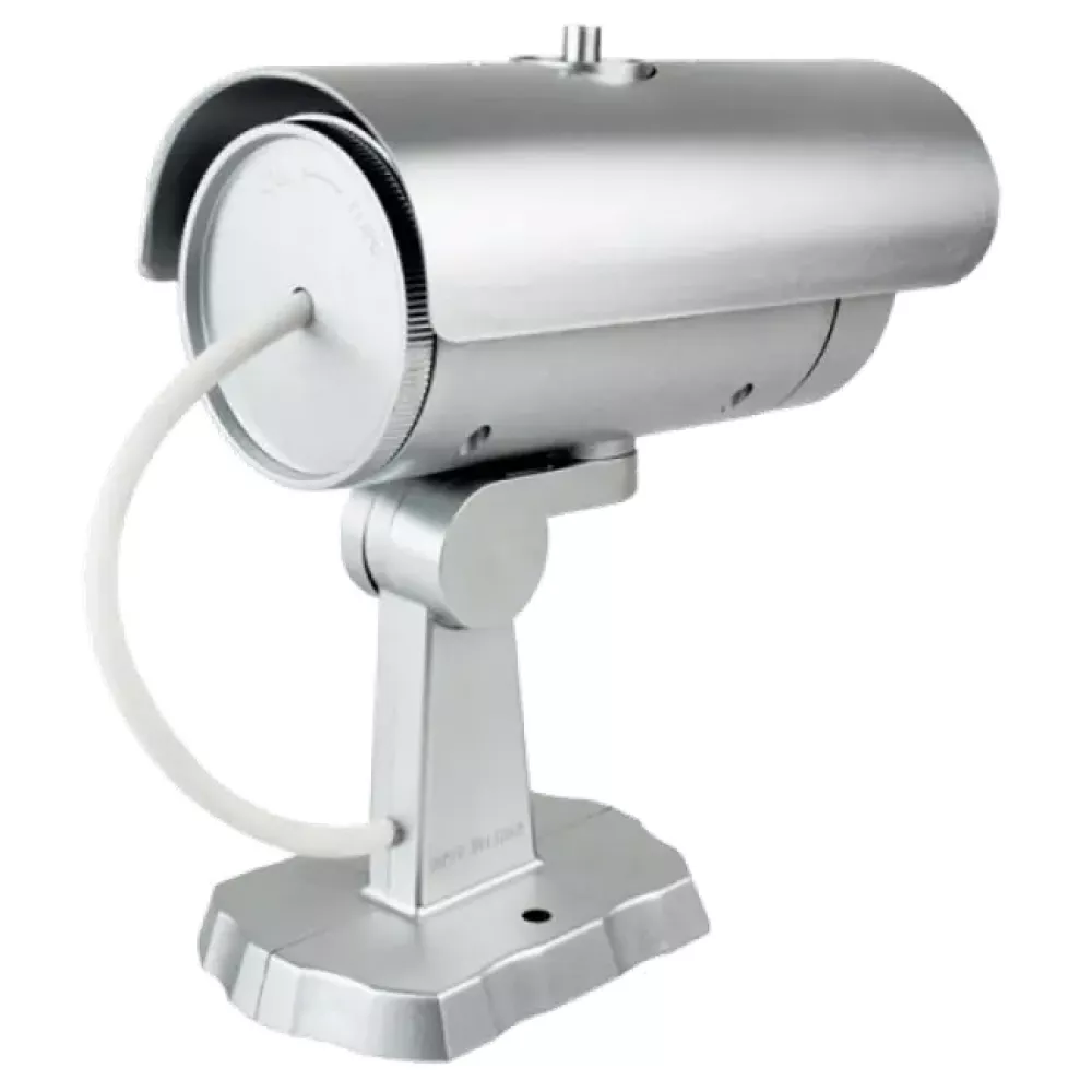 Камера муляж CAMERA DUMMY Описание модели Почему обманка? Все потому, что это вовсе не камера, а очень реалистичный муляж камеры, который очень сложно отличить от настоящей. В данный прибор встроен датчик движения. Стоит только кому-то пройти мимо камеры, как тут же начнет мигать красный светодиод, имитируя запись. Ее, при необходимости, не вынимая батареек, можно отключать – просто нажмите на камеру и светодиод перестанет реагировать на движущиеся предметы, нажмите на нее еще раз – она снова заработает.