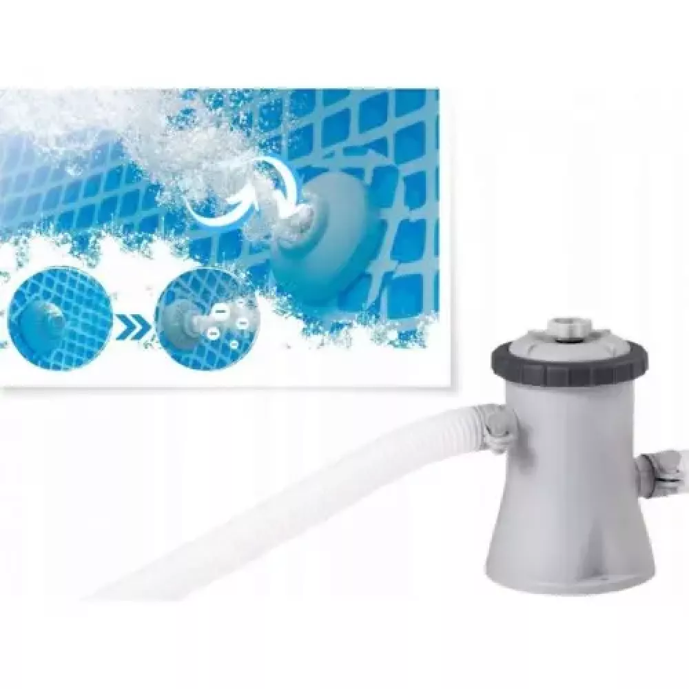 В комплект входит фильтр-насос, который помогает поддерживать чистоту воды, удаляя мелкие загрязнения и обеспечивая циркуляцию.