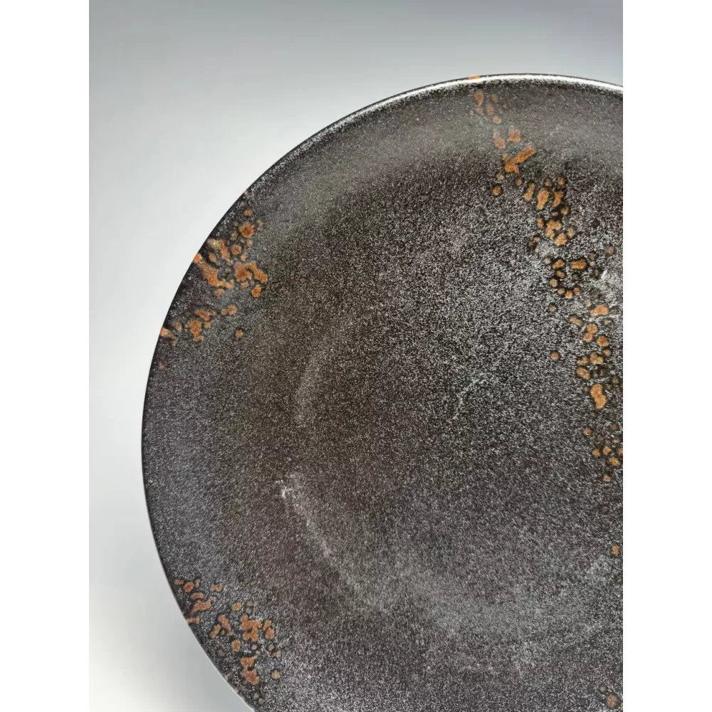 Эффектная тарелка с выразительной текстурой станет элегантным акцентом сервировки. Уникальное покрытие с переливами и декоративными вкраплениями создает чувство премиального ручного изделия.