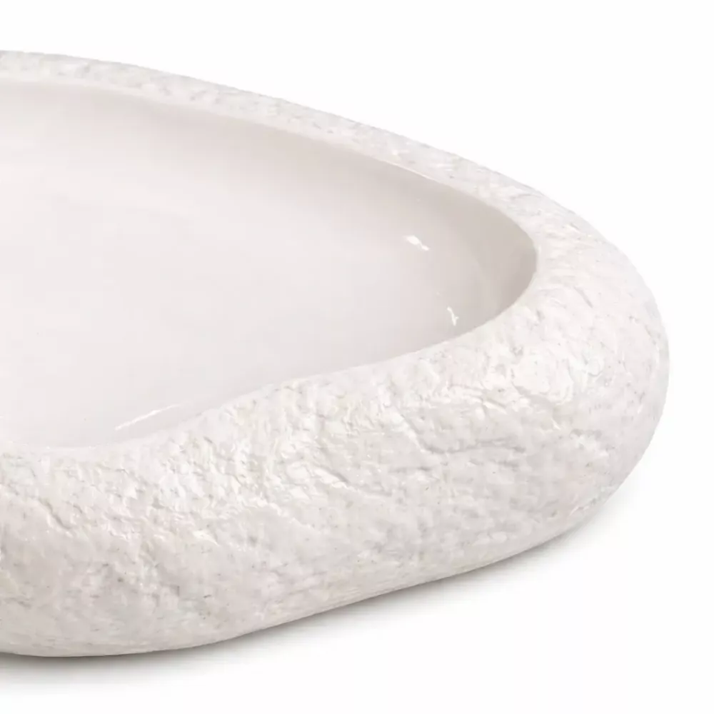 фЭлегантное керамическое блюдо диаметром 31х23 см станет выразительным элементом современной сервировки. Оригинальная форма и объемная текстура по внешнему краю создают эффект ручной работы и придают изделию премиальный вид.