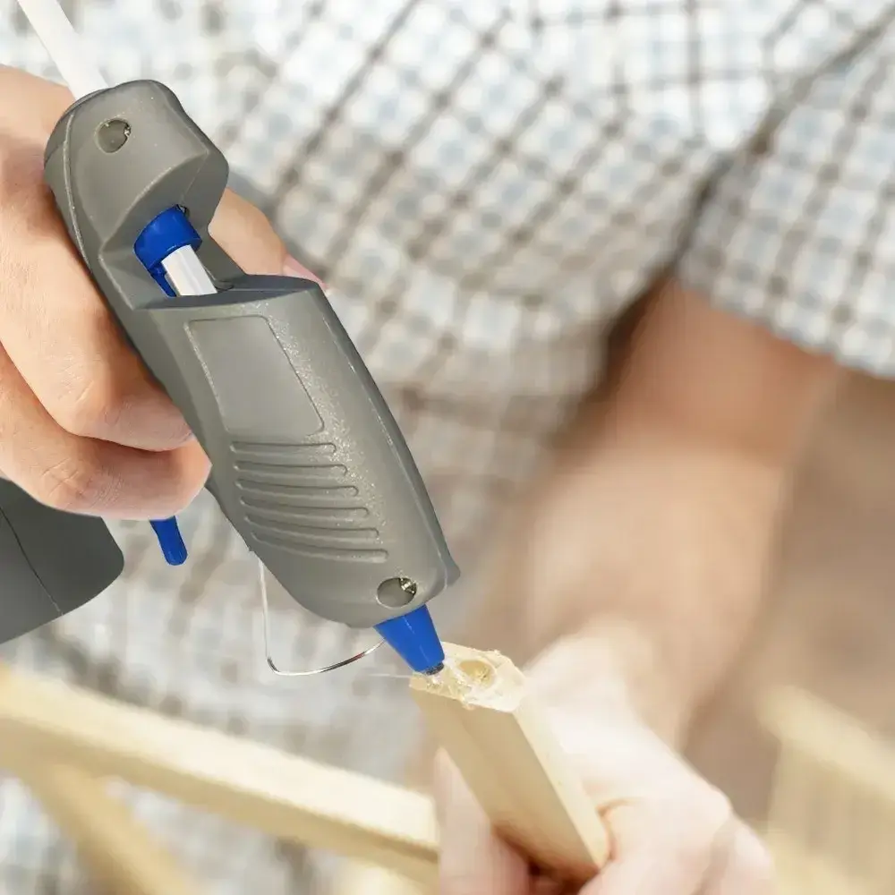Пистолет быстро нагревается, имеет удобный большой курок для точной дозировки клея и поддерживает стандартные стержни диаметром 7 мм. Компактные размеры и небольшой вес делают его идеальным выбором для дома, творчества или мастерской.