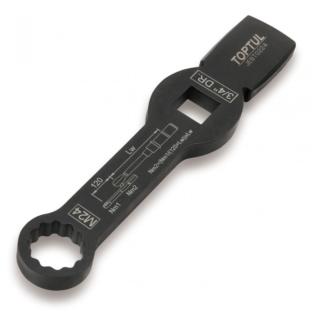 TOPTUL JEBT0224 — специализированный ударный ключ с профилем M24 и квадратом 3/4", предназначенный для демонтажа и монтажа тормозных суппортов на коммерческих автомобилях SAF без необходимости снимать рулевую тягу.