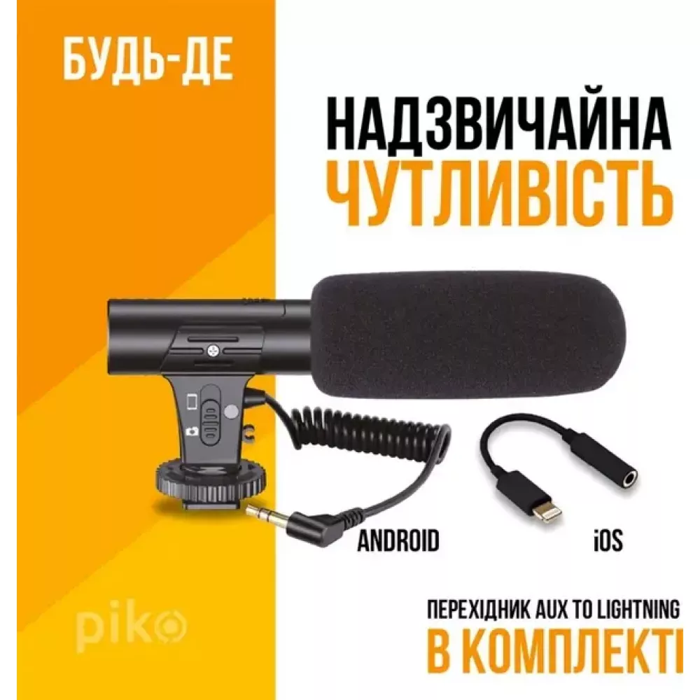 Комплект блогера Piko Vlogging Kit PVK-01LM, що складається із 6.5" настільного трипода з тримачем для смартфона. У комплекті суперкардіоїдний конденсаторний спрямований мікрофон, який живиться від ААА-батарейок. Чутливість 20 дБ. LED-підсвітка білого світла (36 точок LED, 650K, >600Lux). Живлення від вбудованого акумулятора 750 мА·год. Кнопка дистанційного керування смартфоном Bluetooth.