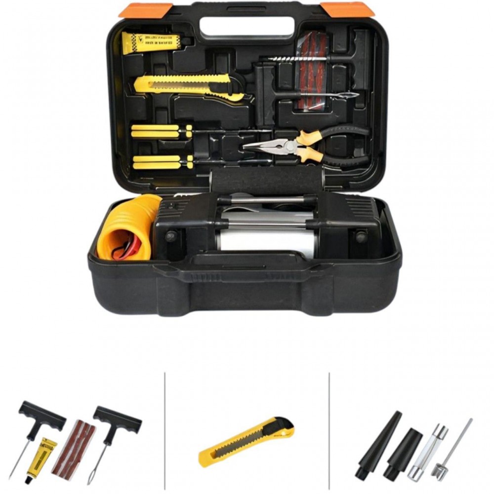 Компрессор автомобильный двухпоршневой + Инструменты, V-TEKK,12В., 30А, 300Вт, 60л/мин.