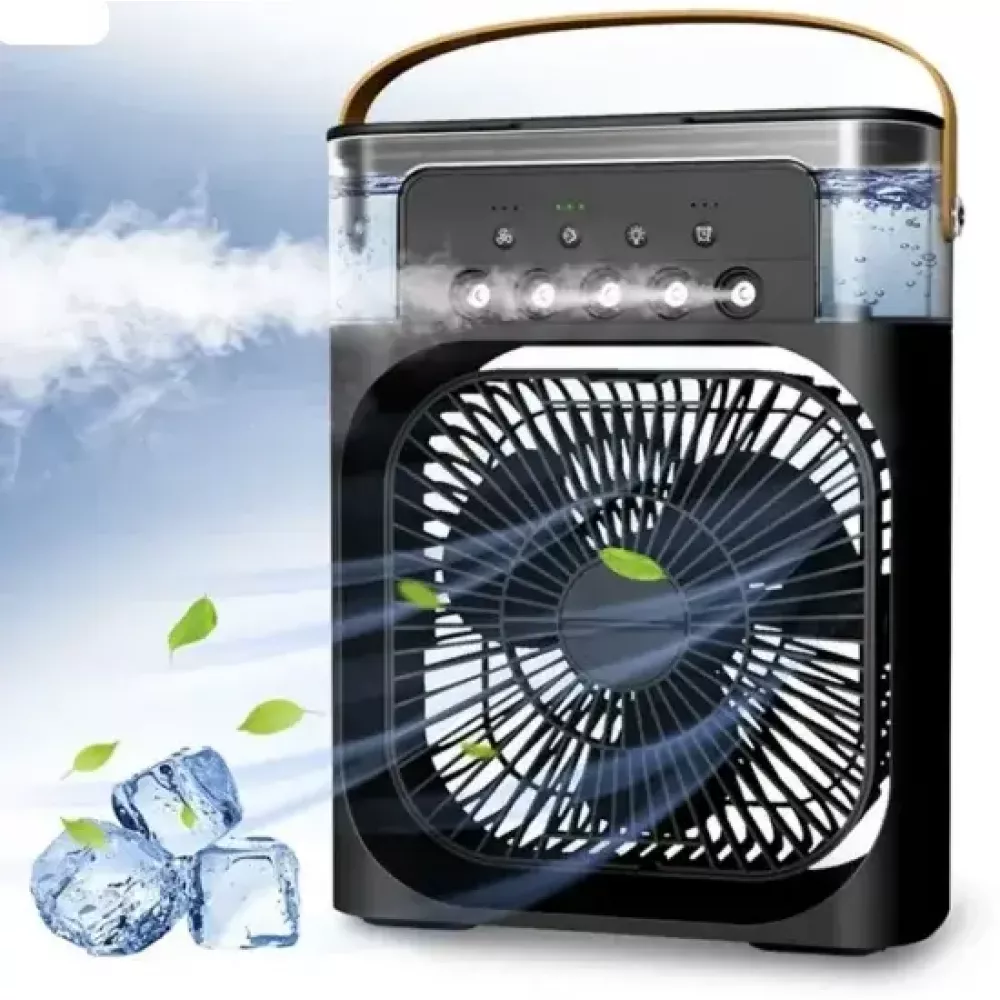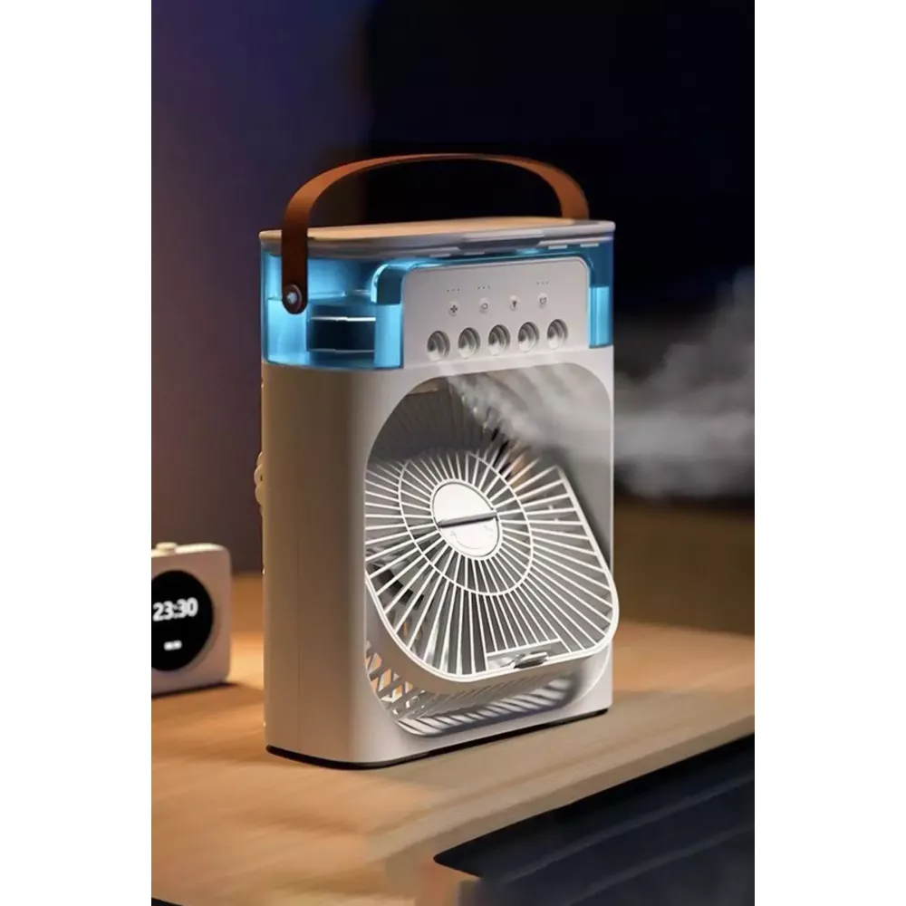 ОХЛАДИТЕЛЬНЫЙ ВЕНТИЛЯТОР USB С УВАЖАЮЩИМСЯ: Настольный охлаждающий вентилятор 3 в 1 с увлажнителем содержит 3 функции: охлаждающий вентилятор, ночник и увлажнитель воздуха, что позволяет вам чувствовать себя комфортнее жарким летом. Этот портативный охлаждающий вентилятор-увлажнитель воздуха с резервуаром для воды емкостью 600 мл и 5 отверстиями для распыления тумана не только обеспечит вам комфортный и прохладный ветер, но и одновременно сделает воздух сухим. Если вы хотите сделать поток воздуха более прохладным, просто добавьте немного льда в резервуар для воды, и у вас получится мини-настольный «кондиционер».