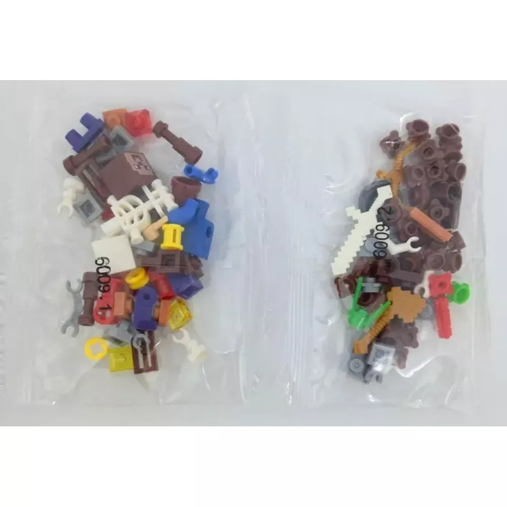 Красочный набор содержит множество реалистичных аксессуаров Minecraft, в том числе верстак, наковальню, точильный камень, фонари души, картофель, свеклу и бочку с рыбой.