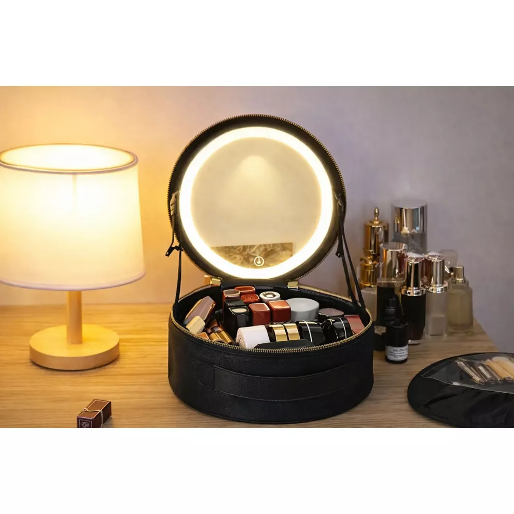 Органайзер-косметичка тревел-кейс для косметики с LED зеркалом из экокожи дорожная – этот стильный и функциональный тревел-кейс для косметики создан для тех, кто ценит порядок, комфорт и элегантность в путешествиях и дома. Изготовлен из высококачественной экокожи, он сочетает в себе практичность, долговечность и современный дизайн. Органайзер косметички идеально подходит для хранения декоративной косметики, средств гигиены и мелких аксессуаров, обеспечивая их целостность и легкий доступ.