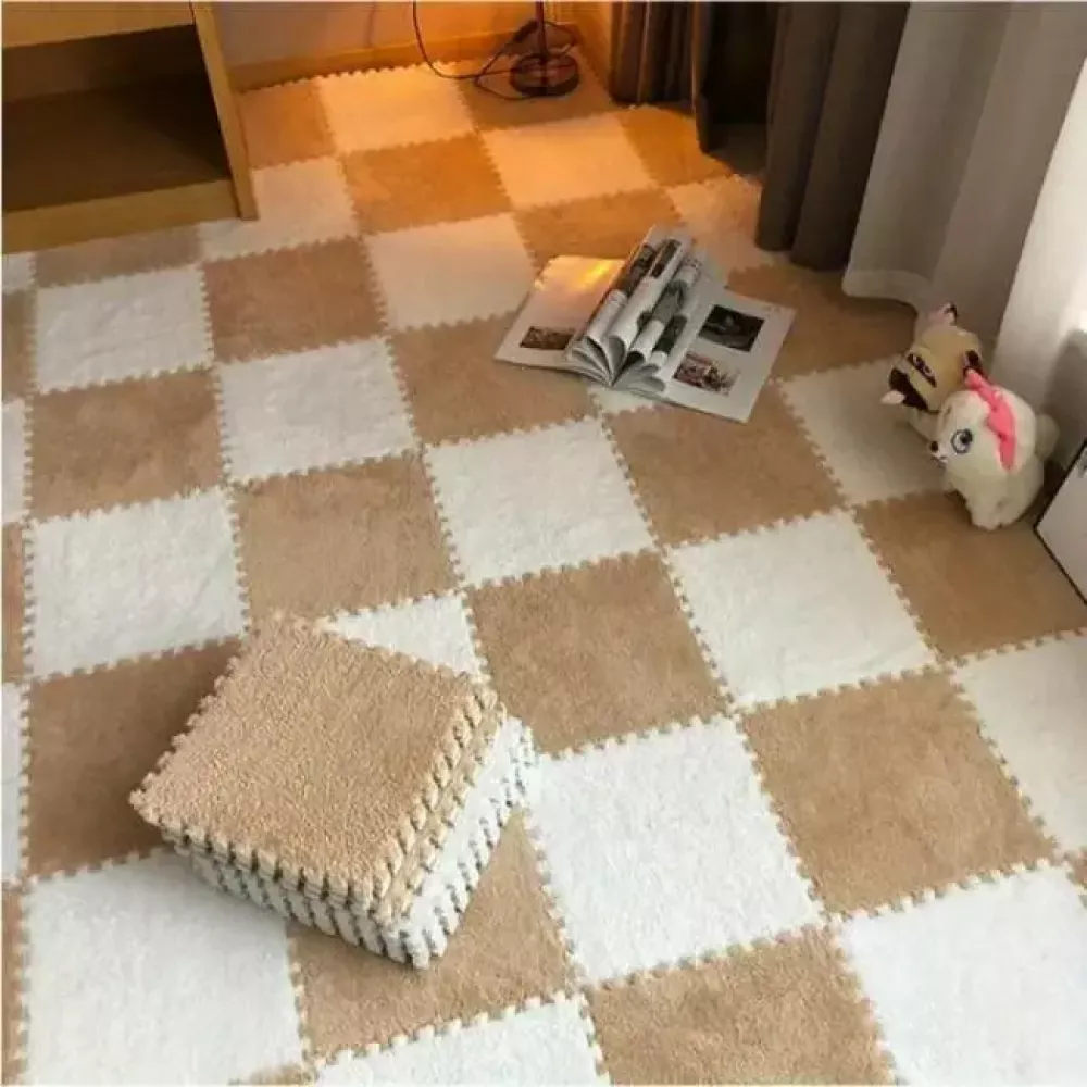 Коврик-пазл c плюшевым покрытием 10 пазлов 30х30х1.5 см- теплый, двусторонний ковер, малышу будет очень удобно, тепло и комфортно ползать или играть. В сложенном виде коврик очень компактный.