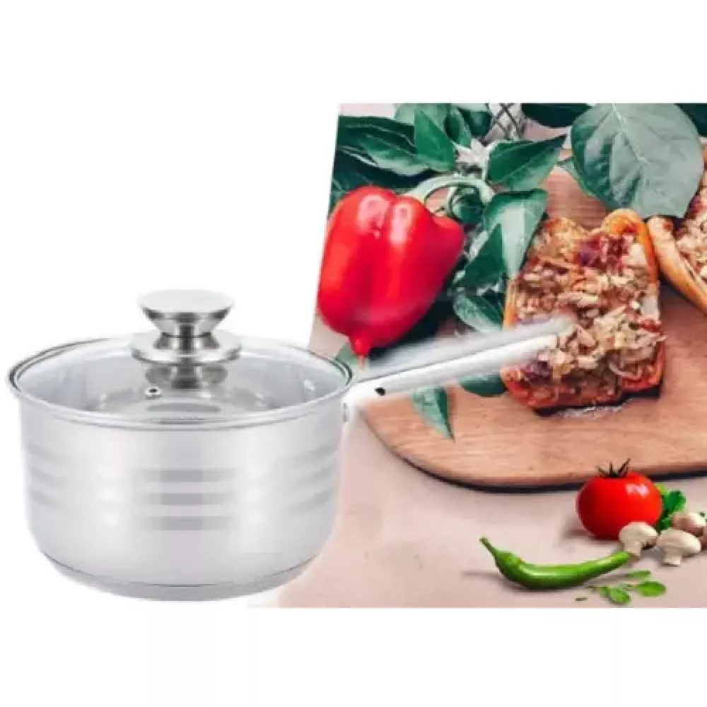 Кухонный ковшик со стеклянной крышкой, объемом 0.8 л. и диаметром 12 см, выполнен из высококачественной нержавеющей стали. Имеет 5-ти слойное термоаккумулирующее, обеспечивающее быстрый и равномерный нагрев. Стеклянная жаропрочная крышка с отверстием для выхода пара. Клепаная металлическая не нагревающаяся ручка. Мерная шкала на внутренней стороне. Ковш совместим со всеми видами плит, включая индукционные. Практичная форма краев предотвращает скопление пищи во время приготовления. Легко моется и чистится. Подходит для мыться в посудомоечной машине и хранения в холодильнике. Стильный и эргономичный дизайн.