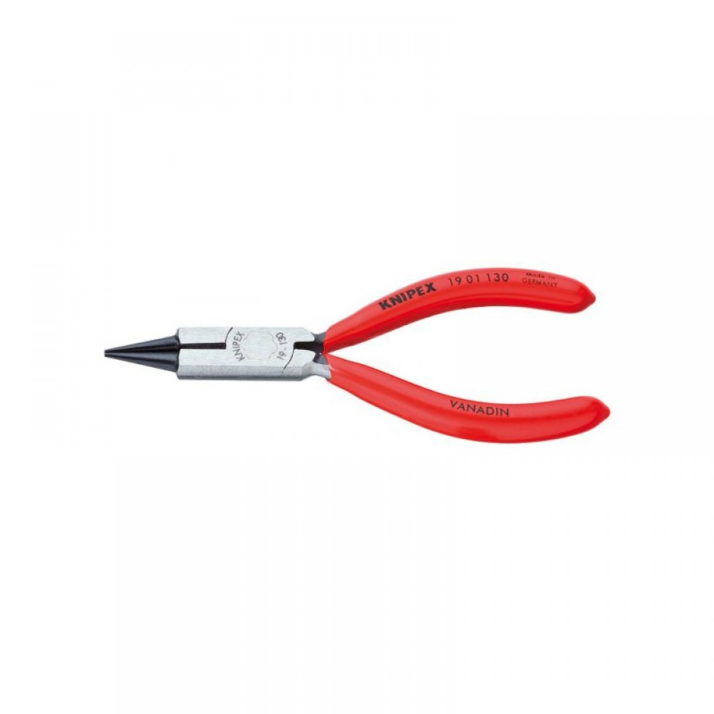 Круглогубці з ріжучою кромкою KNIPEX 19 01 130 для ювелірних робіт, а також згинання тонких дротів призначені для згинання та обрізання, наприклад, в електроніці для вигинання дротяних петель тонкі, що звужуються, круглі губки, шліфовані з високою точністю ріжучі кромки додатково загартовані струмами високої частоти до твердості приблизно 60 HRC ванадієва електросталь, кована, загартована в маслі Характеристики Вага, м 73 Висота, мм 33 Глибина, мм 150 Головка полірована Довжина, мм 130 Кліщі чорні, чорного кольору Параметри режиму різання: дріт середньої твердості O мм 2,2 Параметри режиму різання: твердий дріт, O мм 1,6 Ручки із пластиковими чохлами Ширина, мм 52