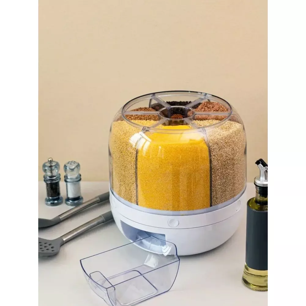 Все нужные продукты поместятся в 6 просторных отсеков диспенсера. В каждый можно поместить 1 кг крупы