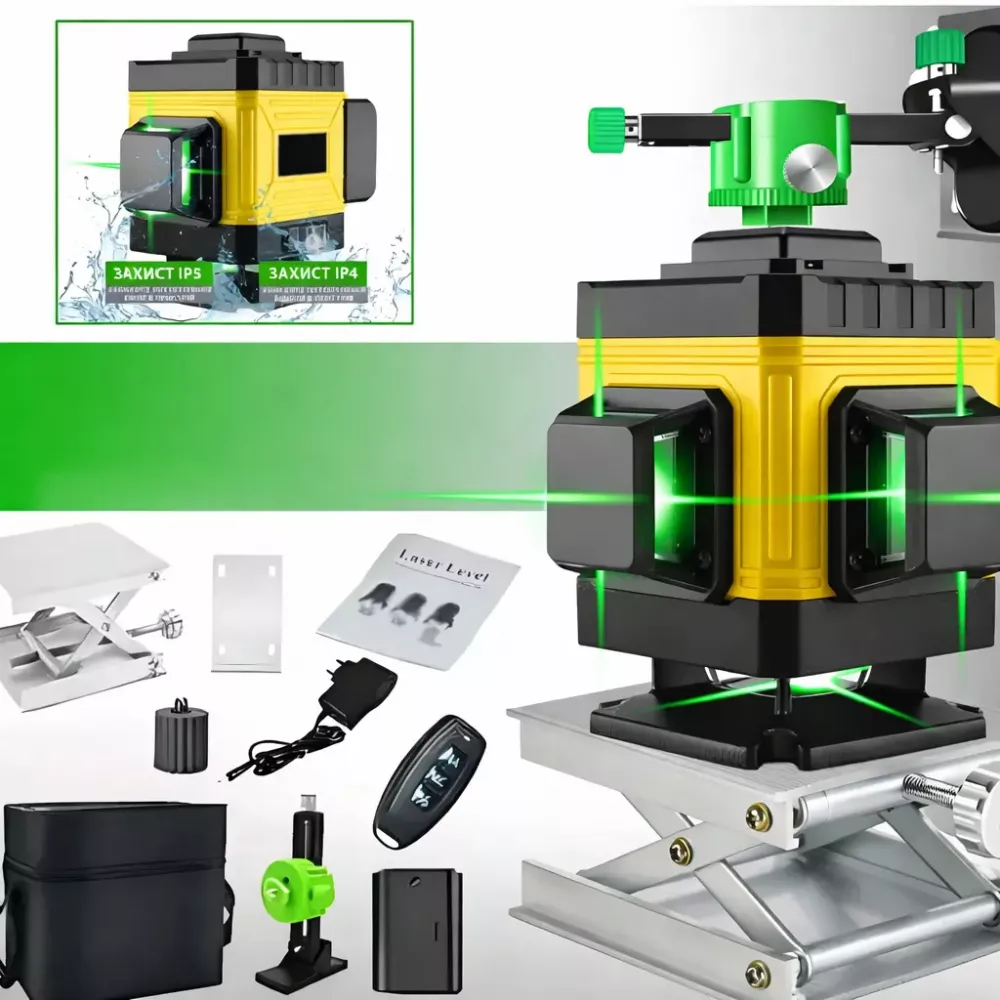 Лазерный уровень 4D – это современный многофункциональный инструмент, обеспечивающий максимально точные измерения и значительно упрощающий строительные и ремонтные работы. Благодаря 16 лазерным линиям уровень позволяет создавать горизонтальные и вертикальные плоскости с охватом на 360 градусов.