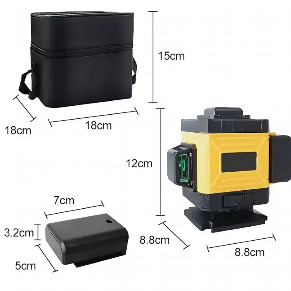 Лазерный 4D 16-линейный нивелир желтый 24V 5Ah, самовыравнивающийся уровень для измерения сечения 16 лучей на 360 в сумке