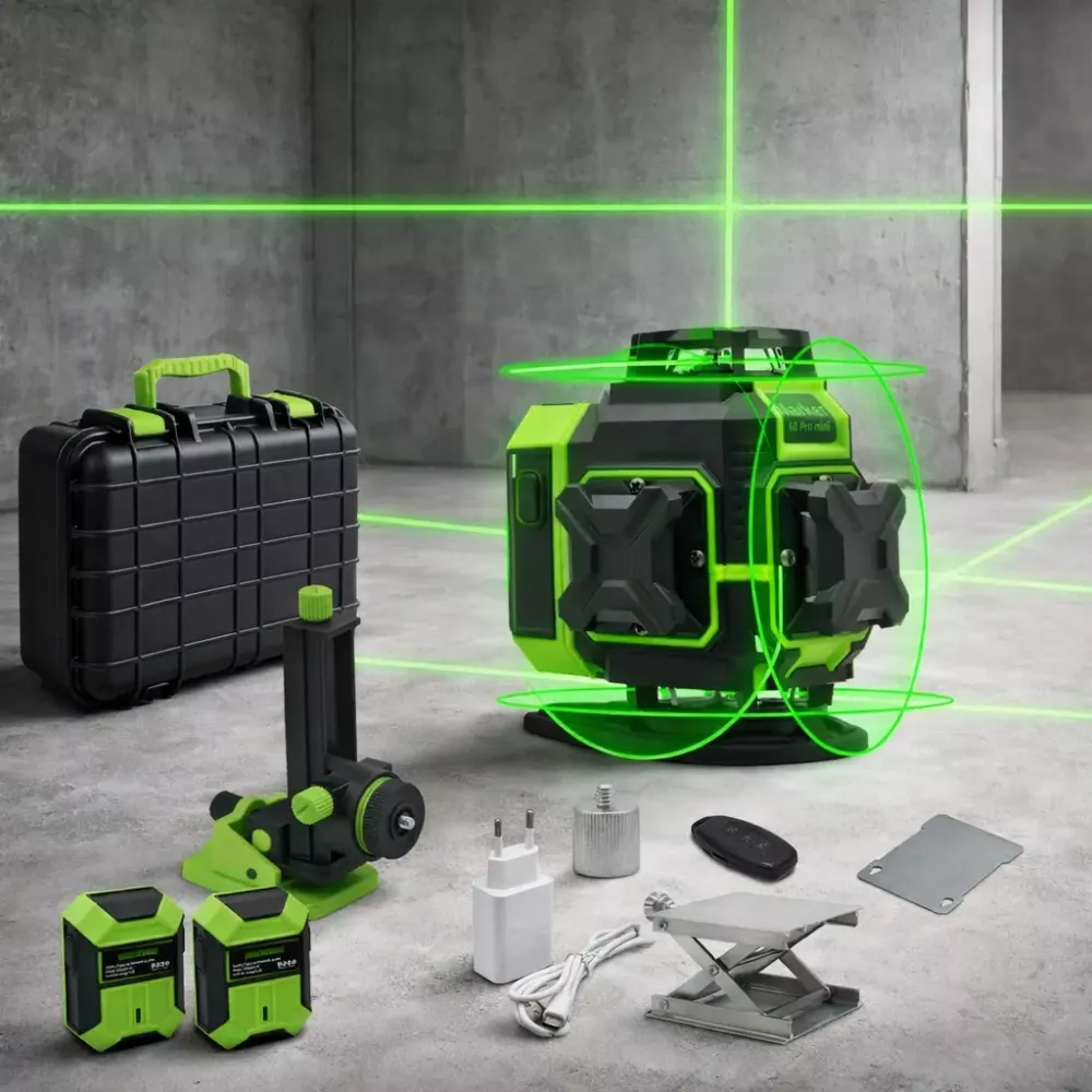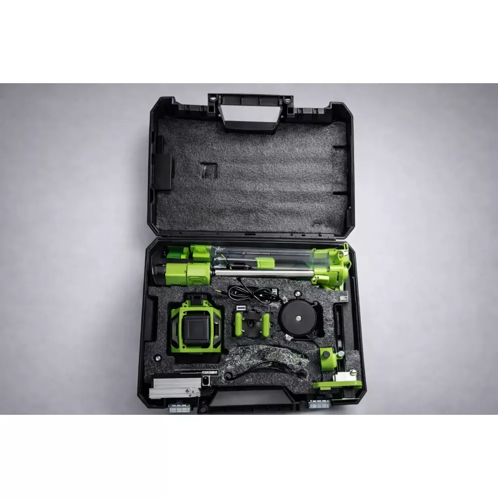 Лазерный уровень 360° зеленый 12 лучей 1 м, в кейсе: