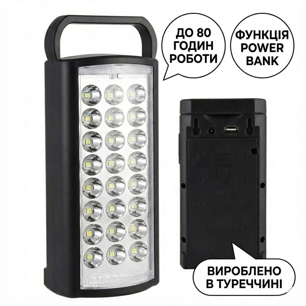 LED-фонарь аккумуляторный черный корпус HER-TEX HT-2626, 24 диода, USB, до 80 часов