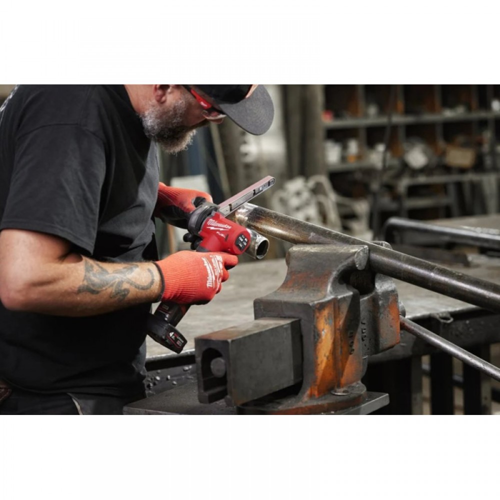 Стрічкова шліфувальна машина 13мм M12 FBFL13-402В MILWAUKEE (+ заряд.пристрій, 2 акум., сумка для інструментів)
