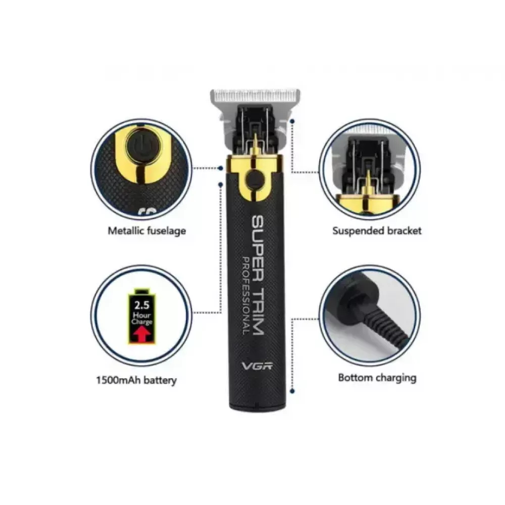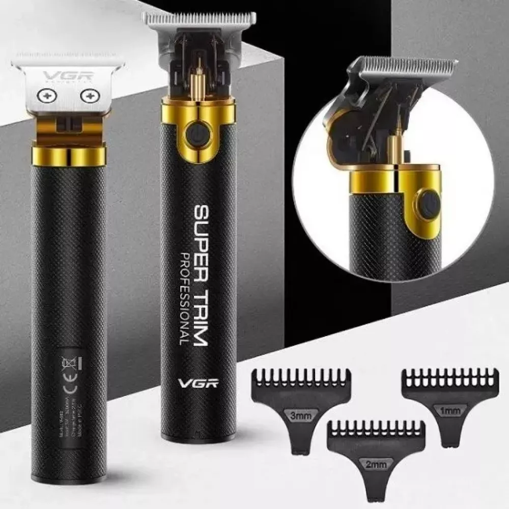 Машинка для стрижки аккумуляторная беспроводная профессиональная + 3 насадки / Триммер для волос VGR V-082