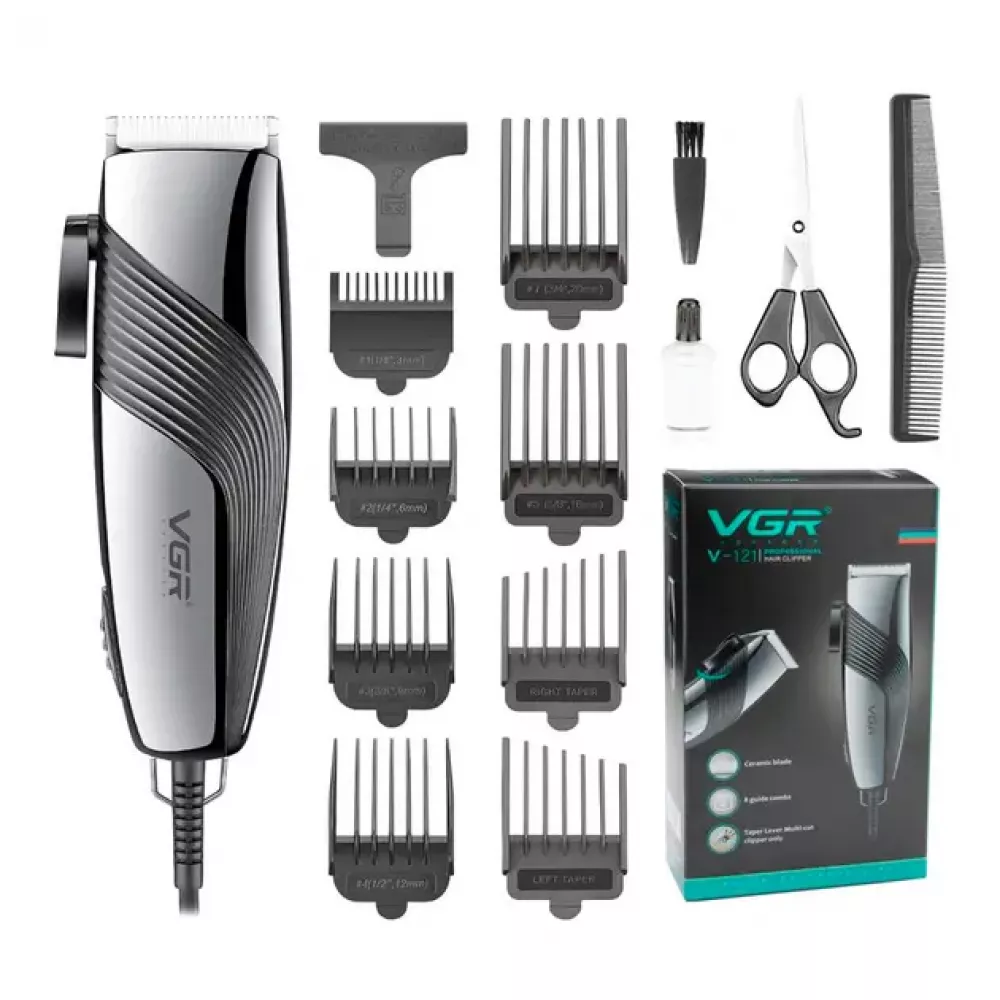 Машинка для стрижки волос и бороды VGR Professional V-121, 8 насадок, ножницы, расческа, от сети 220
