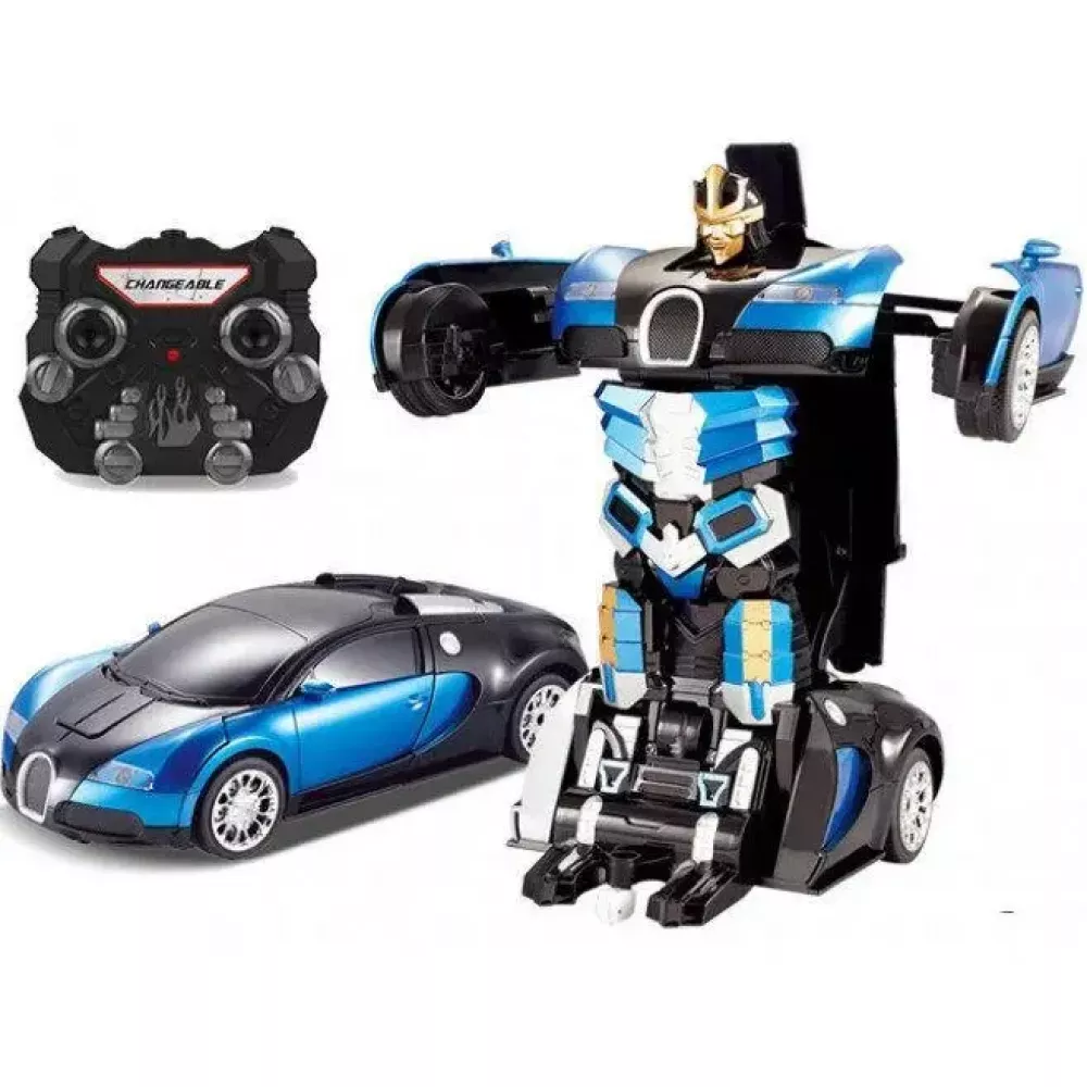 Машинка Трансформер Bugatti Size 18 см Robot Car синя з пультом
