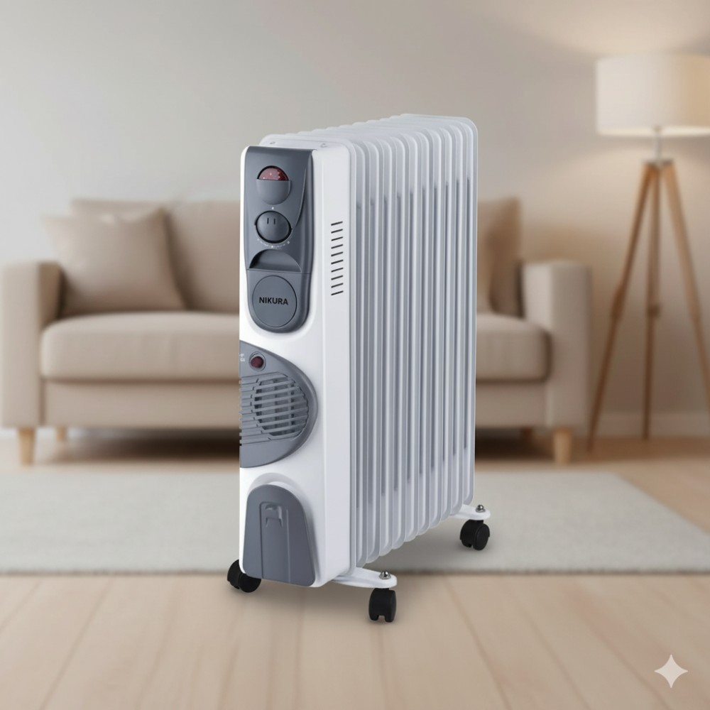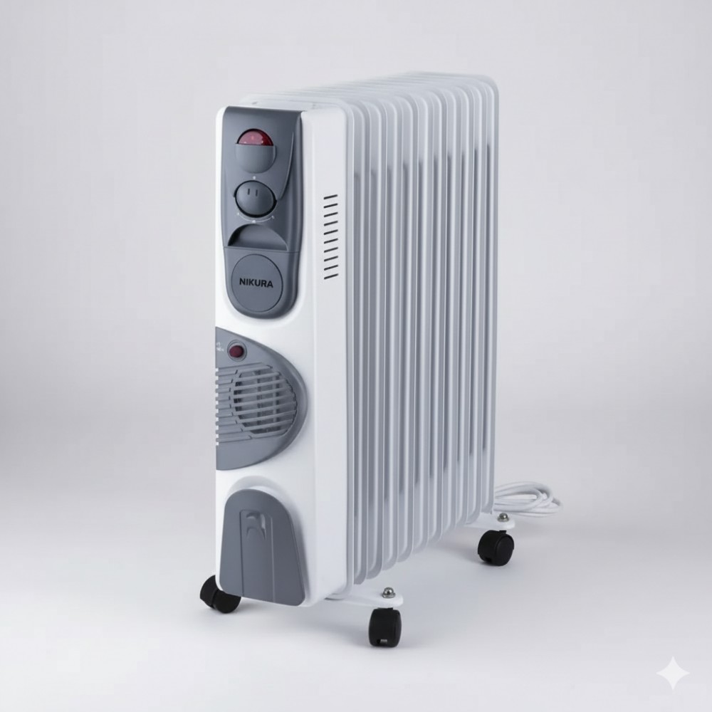 Масляный обогреватель 11FAN на 2900 Вт 11 секций, с конвекцией воздуха, белый – Керамический маслонаполненный комнатный обогреватель мощностью 2900 Вт с 11 ребрами и вентилятором лучше всего подходит для любой комнаты в вашем доме. Этот обогреватель оснащен 11 керамическими ребрами, которые равномерно и быстро распределяют тепло, а также вентилятором, который способствует циркуляции тепла.