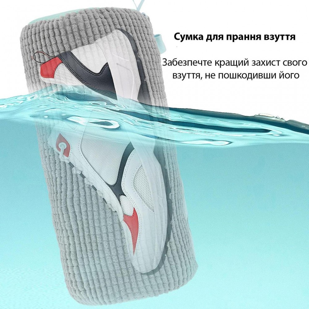 Описание Мешок для стирки обуви в стиральной машине для 1 пары обуви Мешок для стирки обуви и мягких игрушек – это уникальный аксессуар, который призван облегчить процесс очистки и ухода за вашей обувью и мягкими игрушками. Теперь ваши любимые кроссовки или тренировочная обувь будут выглядеть как новые после каждой стирки. ОСОБЕННОСТИ: Мешок изготовлен из специальной сетки для стирки белья, которая нежно очищает обувь, не повреждая ее поверхность. Мешок обеспечивают бережную стирку ваших кроссовок, кед и другой обуви. Мягкие волокна микрофибры внутри мешка деликатно удаляют загрязнения. Универсальное использование. Мешок для обуви также подходит для стирки мягких игрушек, позволяя вам сохранять их в чистоте и свежести. Может использоваться так же и в сушильных машинах. Дополнительная защита стиральной машины от грязи. Используя мешок для стирки белья, вы обеспечиваете дополнительную защиту для вашей стиральной машины, предотвращая попадание мелких частиц и грязи внутрь устройства. Это эффективный и практичный аксессуар, который необходим в каждом доме. Простая в использовании. Просто поместите шнурочки кроссовок, игрушки или другие предметы внутрь, затяните мешок и положите в стиральную машину. Благодаря плотной структуре сетки, ничего не выпадет во время стирки. Удобно брать в дорогу. Сумку-органайзер можно взять с собой в путешествие, как аксессуар для хранения вещей, стирки мягких игрушек и других деликатных вещей. Рекомендации: Для стирки подойдут любые средства: порошок, гель, капсулы. Характеристика: Материал: микрофибра Размер: 39х19 см