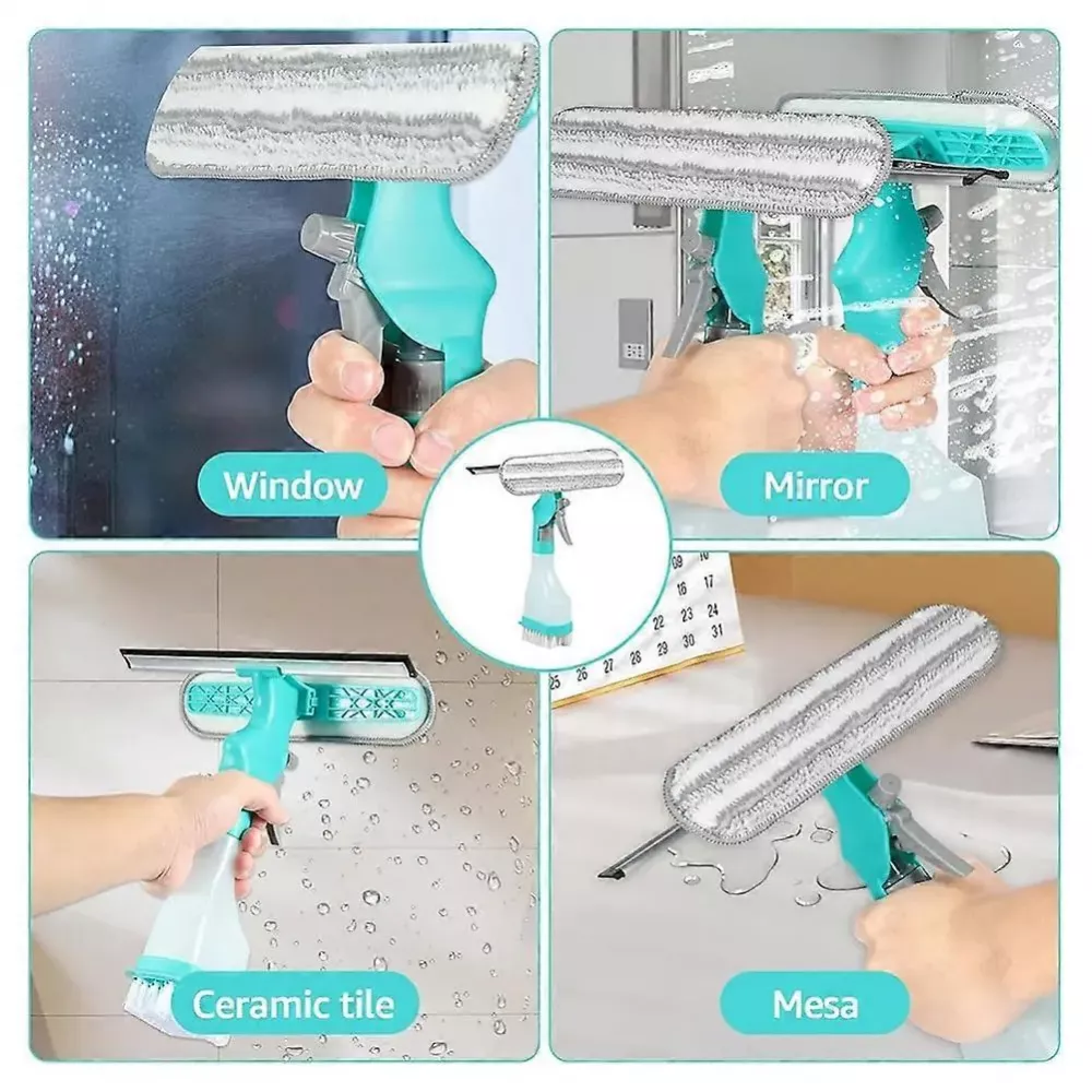 4 в 1: Объединяет скребок, щетку, щетку и распылитель в одном устройстве для эффективной сборки.