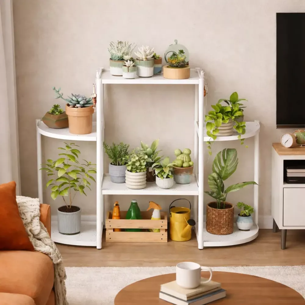 элегантный белый или классический черный, что позволяет выбрать оптимальный вариант под любой интерьер. Удобные размеры и функциональный дизайн делают эту этажерку отличным дополнением к вашему дому. Разместите на ней как суккуленты, так и более крупные растения, создавая зеленую атмосферу в любой комнате.