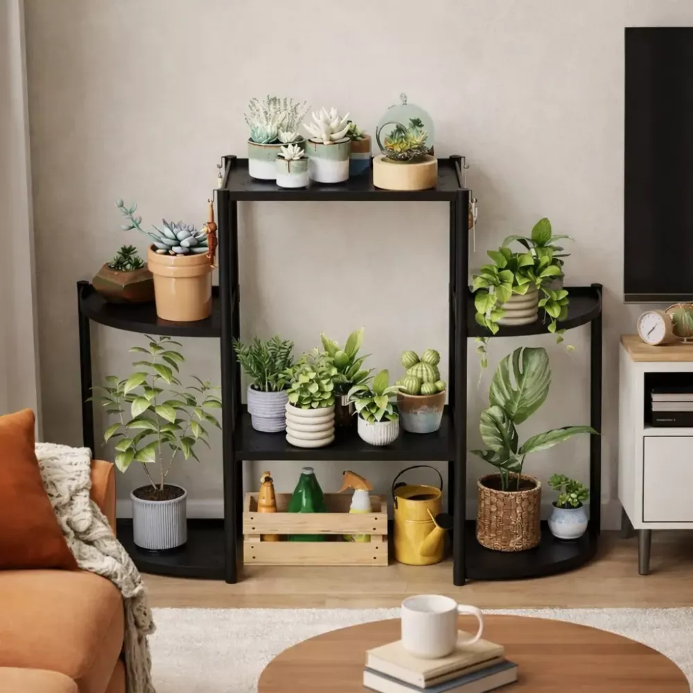 элегантный белый или классический черный, что позволяет выбрать оптимальный вариант под любой интерьер. Удобные размеры и функциональный дизайн делают эту этажерку отличным дополнением к вашему дому. Разместите на ней как суккуленты, так и более крупные растения, создавая зеленую атмосферу в любой комнате.
