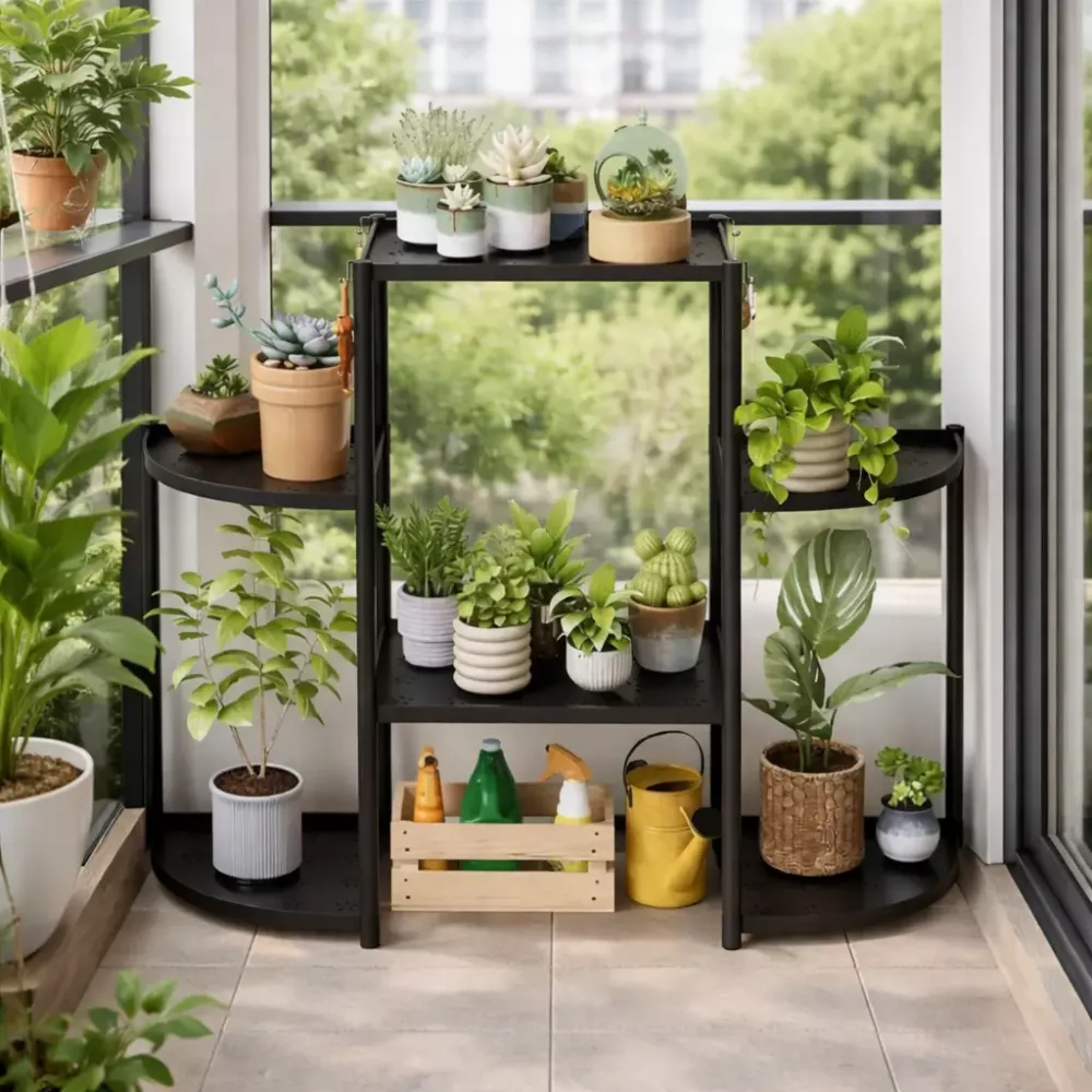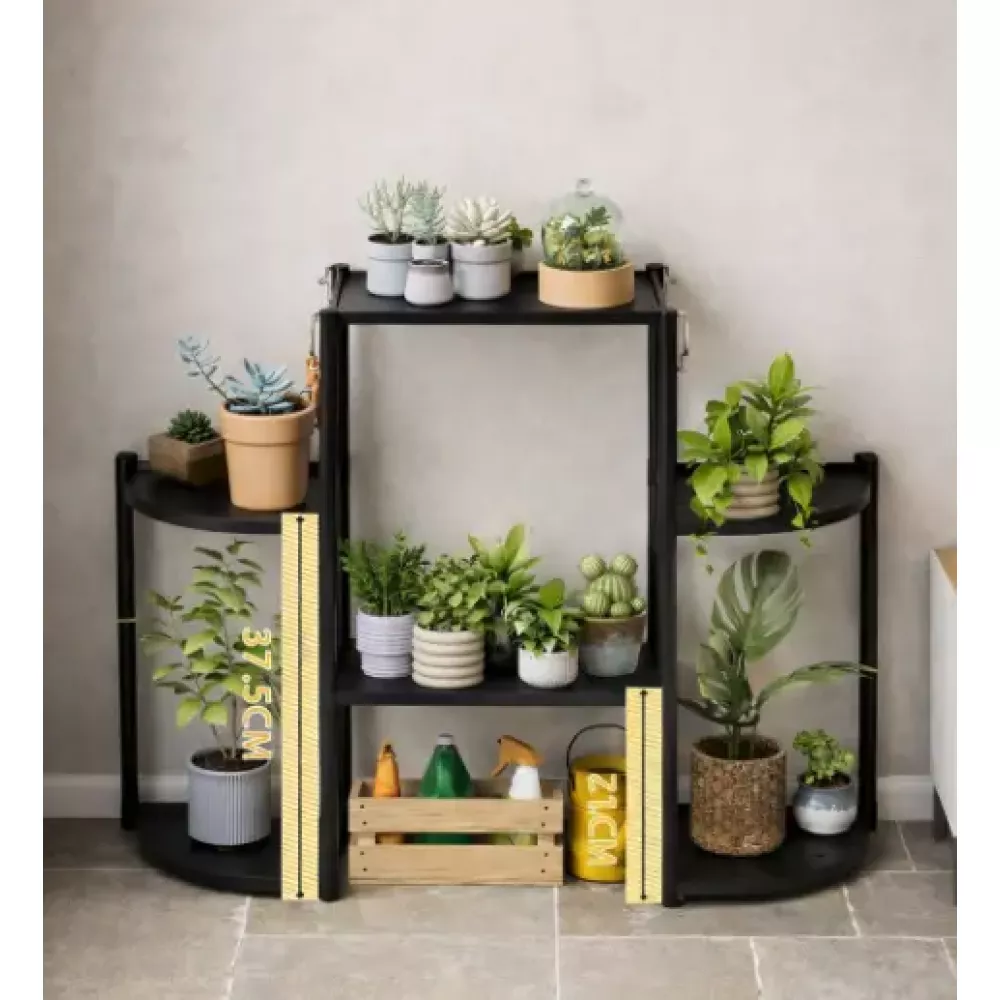 Многоярусная ступенчатая напольная подставка для цветов / Этажерка-стойка для растений Черная
