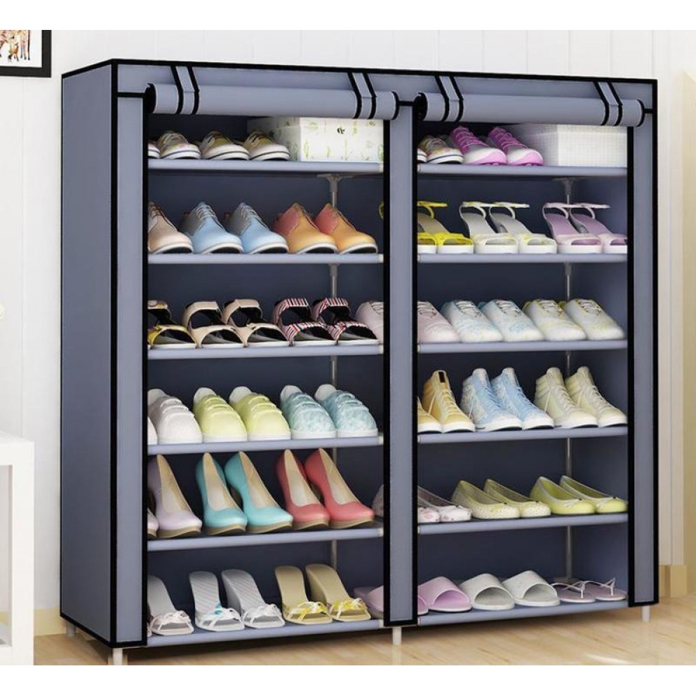 Мобильный тканевой шкаф-органайзер HCX для хранения вещей и обуви T-2712 на 2 секции Серый