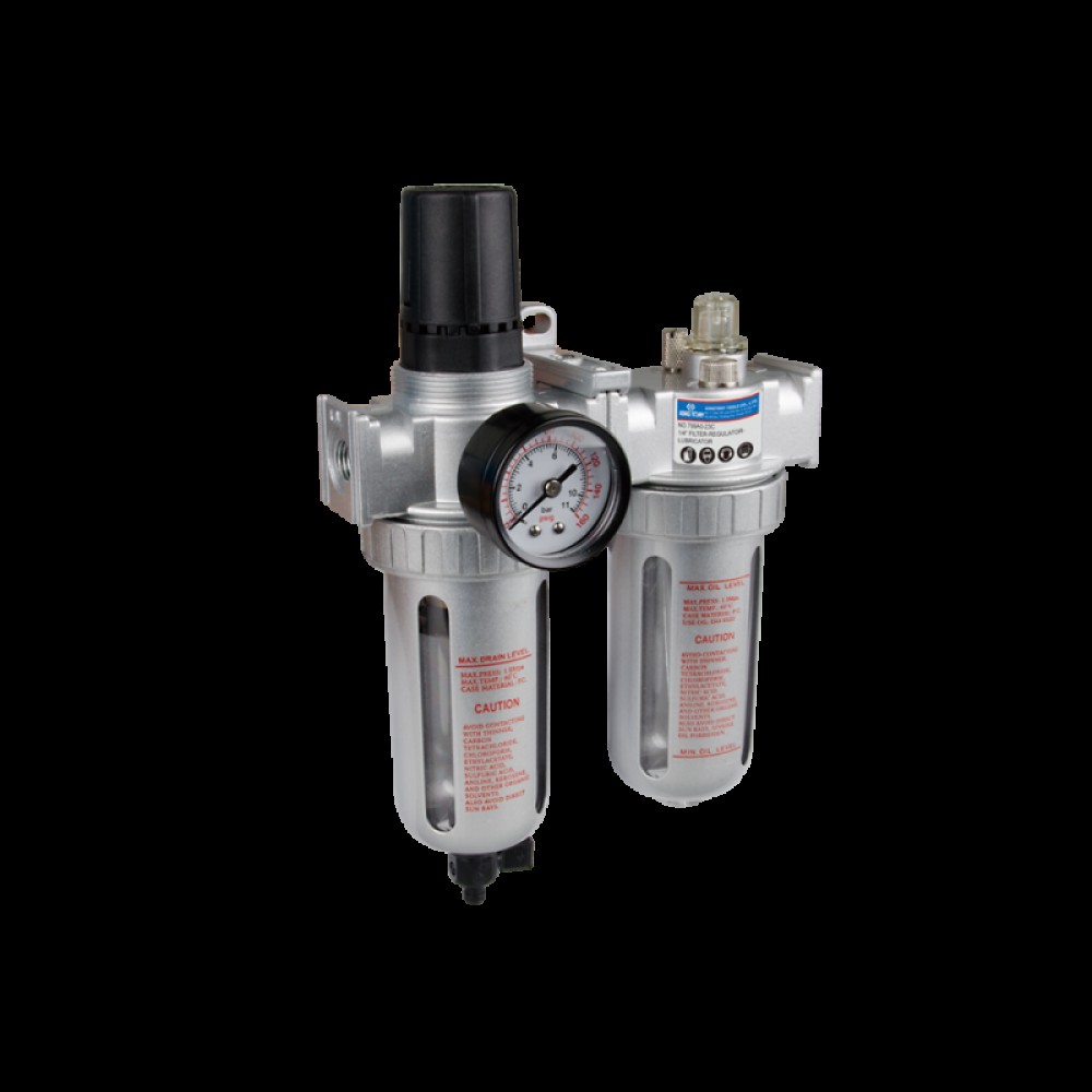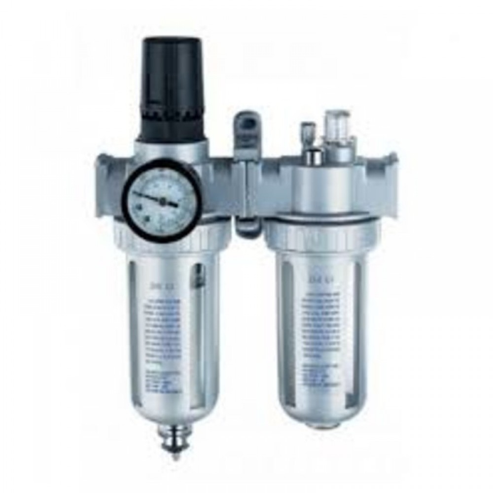 Блок підготовки повітря служить для очищення стисненого повітря від пилу та вологи, регулювання та контролю тиску та розпилення в системі стисненого повітря олії для змащування інструменту. Діаметр різьблення 1/2". Регулювання тиску 0-10bar. Max вхідний тиск: 215 psi - 15bar