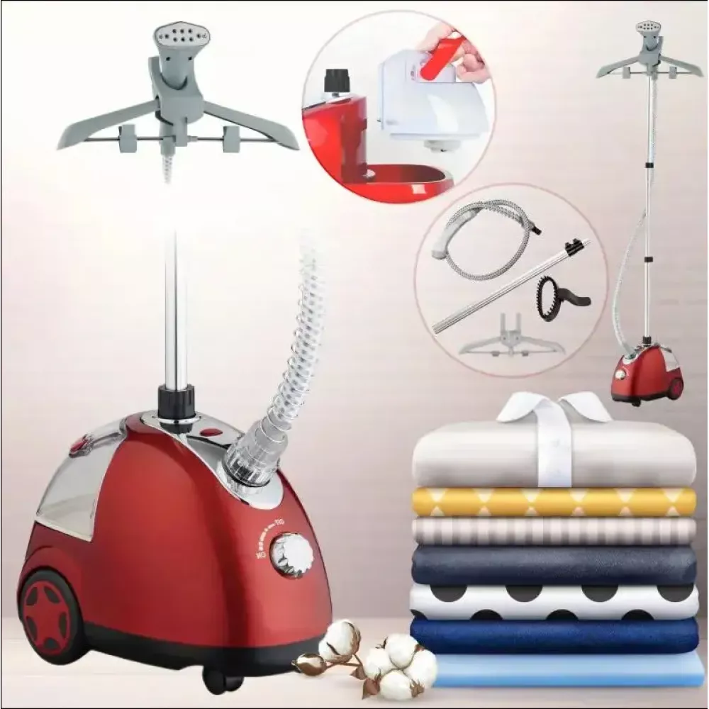 Комплектация: инструкция, база отпаривателя, контейнер для воды, стойка, паровой шланг, складная вешалка, фиксатор шланга, насадка.