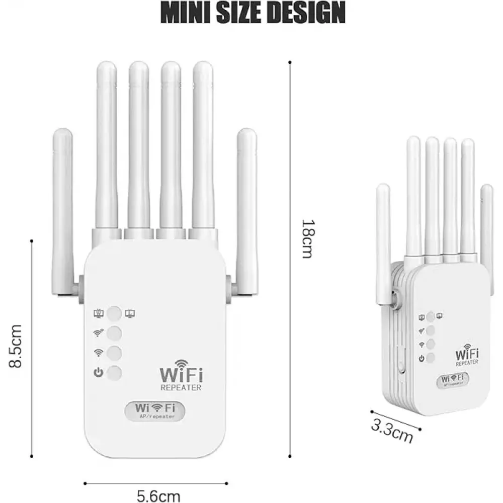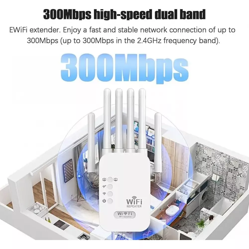 Улучшите сигнал интернета в доме или офисе с помощью современного Wi-Fi ретранслятора с 6 антеннами. Устройство поддерживает скорость до 300 Мбит/с, работает на частоте 2.4G, имеет LAN-порты и поддерживает режимы ретрансляции, точки доступа (AP) и маршрутизатора.