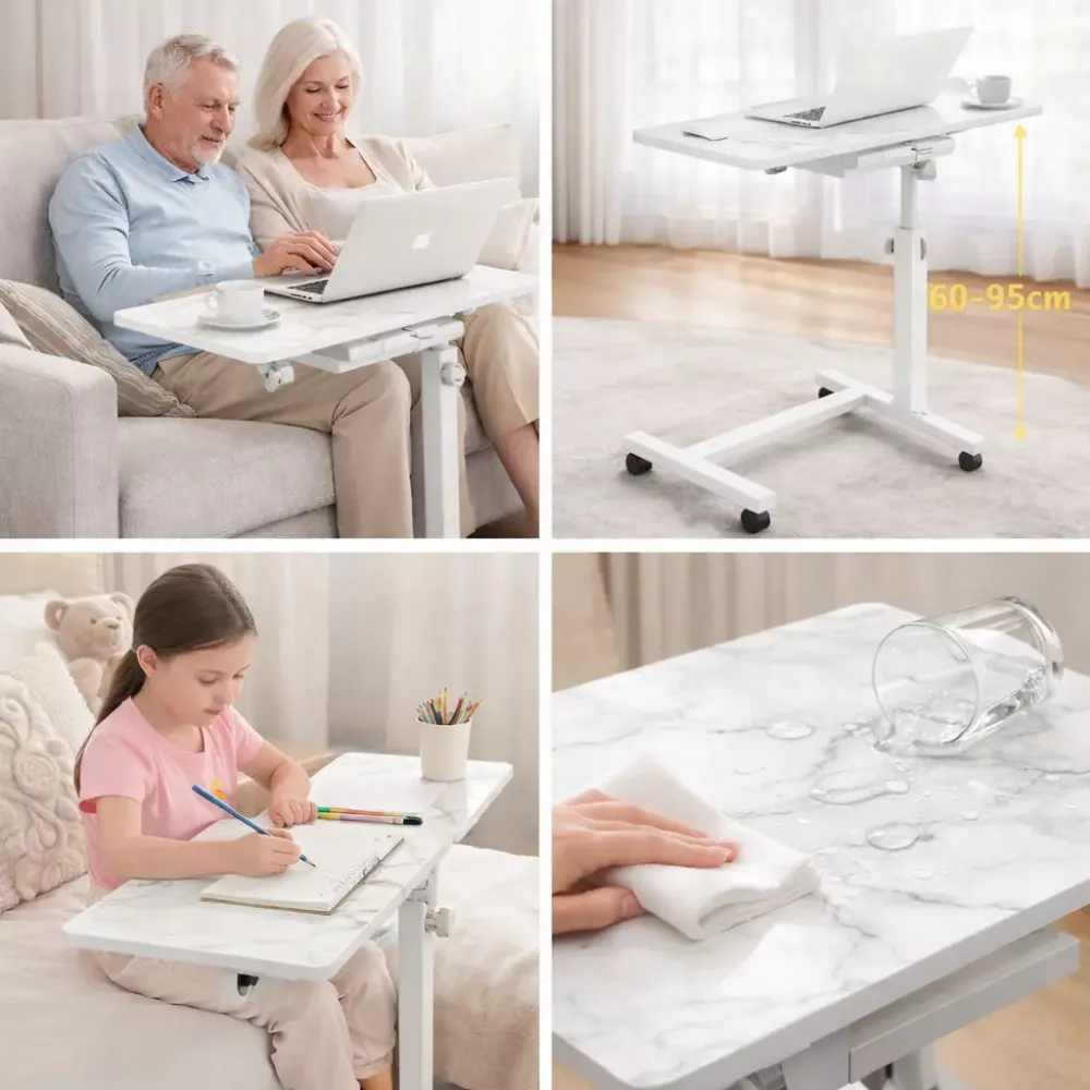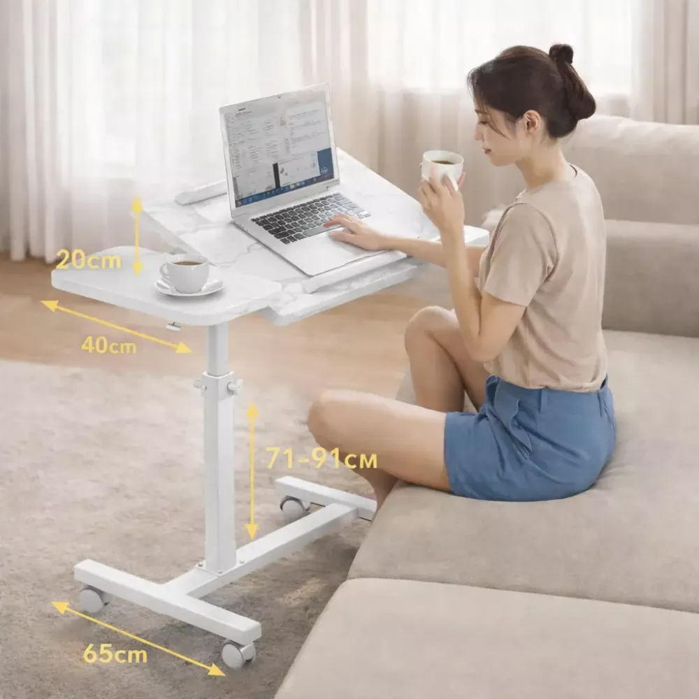 Мраморный стол DASH-64200 для ноутбука на колесиках с регулировкой высоты 60*40*59-89см