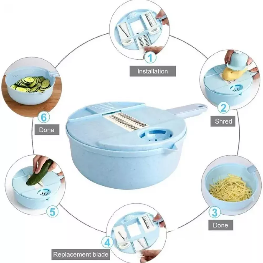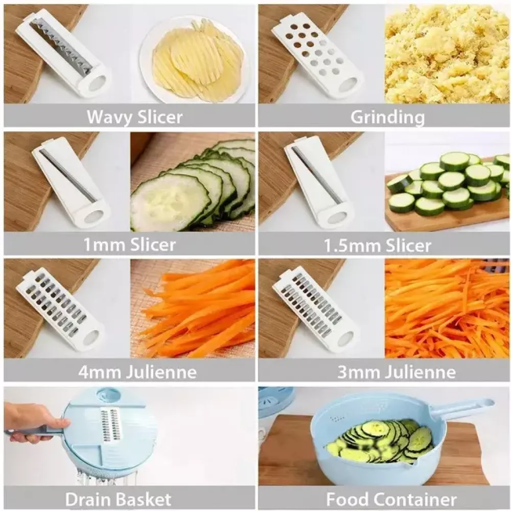 Мультислайсер 10 в 1 NK 001 – незаменимый помощник на кухне, позволяющий быстро нарезать овощи и фрукты разными способами. В комплекте много различных устройств для нарезки и терки. Овощерезка легко моется в теплой воде с мылом, а хранить ее можно в специальном контейнере. Этот товар – отличный подарок для любителей готовить и следить за здоровьем.