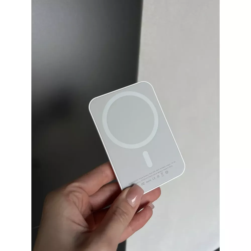 Беспроводной павербанк работает по принципу технологии MagSafe. Он легко магнитится к задней стенке последних iPhone и начинает заряжать