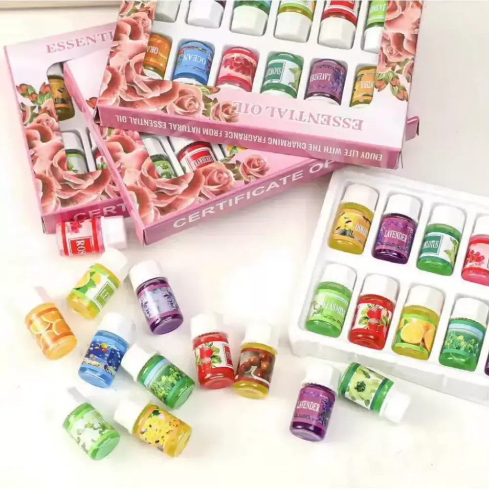 Набор эфирных масел 12 шт.,в стеклянных флаконах / Натуральные аромамасла для аромалампы, массажа, SPA и дома