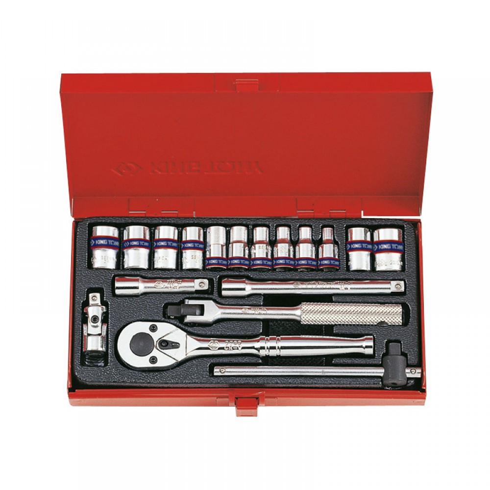 Набір інструментів 18 од. 1/4" 12-ти грані KINGTONY 2019MR Головки торцеві 12-гранні 1/4": 4, 4,5, 5, 6, 7, 8, 9, 10, 11, 12 мм Тріскачка 1/4" Вороток 1/4" Т-подібний Вороток 1/4" з карданом Подовжувачі 75мм та 150мм Кардан 1/4"