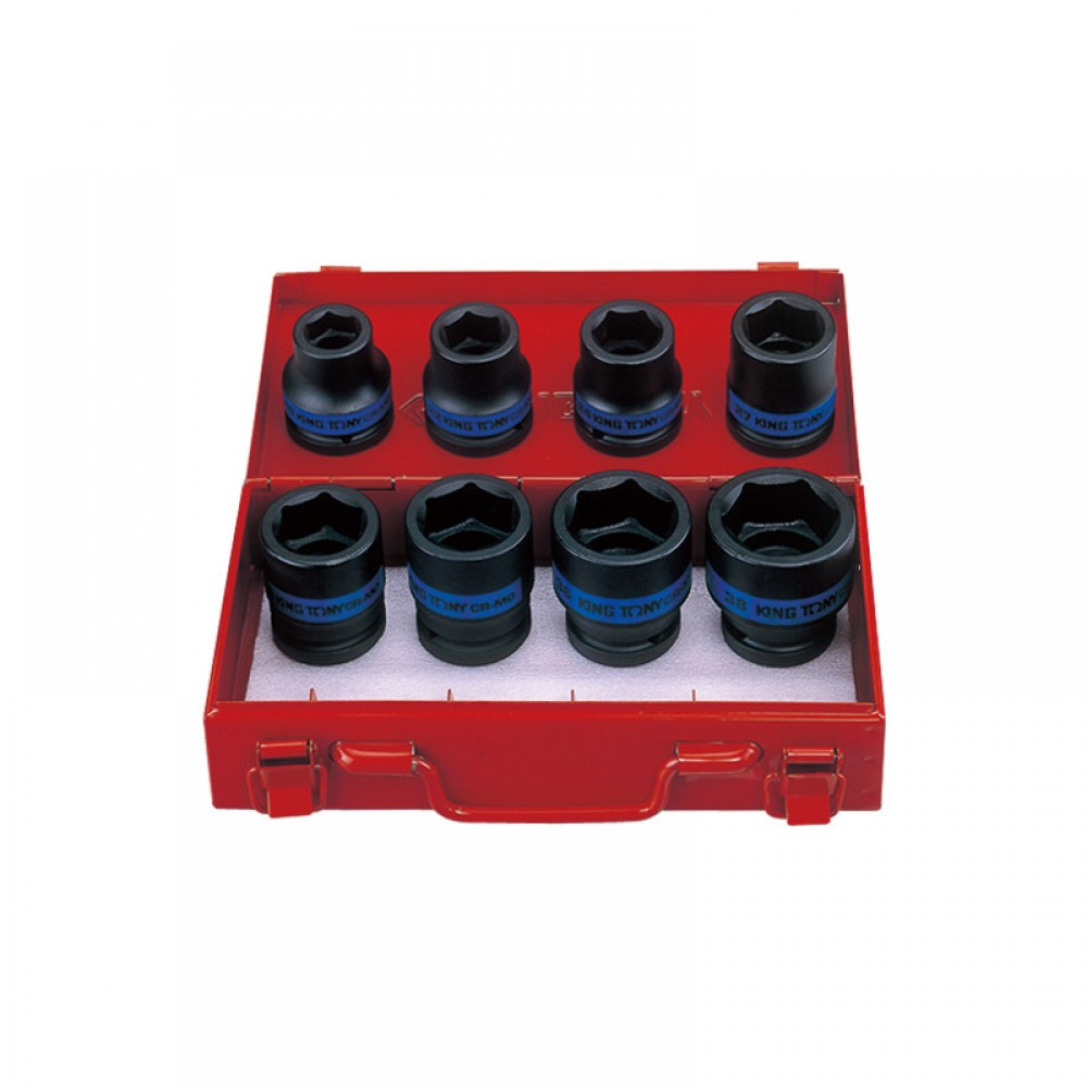Набір ударних головок 8од 3/4" KINGTONY 6408MP Квадрат, що приєднується 3/4" Розмір головок: 19, 22, 24, 27, 30, 32, 36, 38 мм Металевий футляр: 241 х 124 х 68 мм Кількість: 8 предметів Тип голівок: стандартні, Вага: 3.5 кг