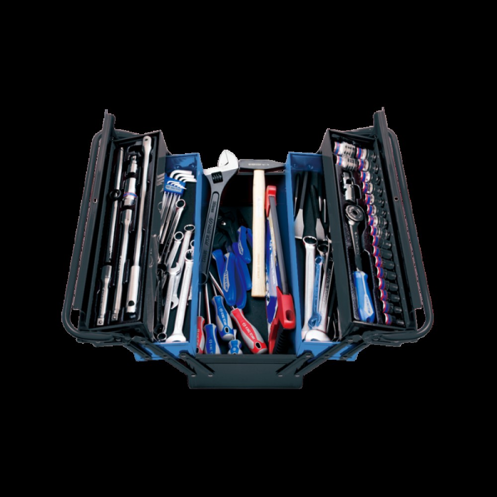 Ящик переносний з інструментом, 68ін. Склад ящика •Ящик переносний для інструменту 87402 •набір комбінованих ключів 1060 (8, 10, 11, 12, 13, 14, 15, 16, 17, 18, 19, 21, 22, 24) •набір шестигранних ключів з головкою 1120MR (1.5, 2, 2.5, 3, 4, 5, 6, 8, 10) •набір хрестоподібних викруток 1421 (No.1 x 80, No.2 x 38, No.3 x 150) •набір шліцевих викруток 1422 (5.5 x 100, 6.5 x 38, 8 x 175) •пасатижі 6111-07 (188 мм); •тонконоси 6311-06 (164 мм) •кернер 76104-05 (120 мм) •зубила 762 (150, 200 мм) Виколотки 764 (3х125, 4х150, 5х165, 6х180 мм) •кліщі переставні 6511-10 (253 мм) •молоток 7821-30 (395г) •ключ розвідний 3611-12P •набір 9-4116FR приладдя для торцевих головок: Вороток 1/2", 450 мм, з шарніром 4452-18FR Подовжувач 1/2", 50 мм, 15 градусів, з кульовим закінченням 4223-02R Головка свічкова шестигранна 1/2", 21 мм, L=70 мм, гумовий фіксатор 463521R Вороток 1/2", 300 мм, ковзний 4572-12 Подовжувач 1/2", 250 мм 4251-10R Подовжувач 1/2", 125 мм 4251-05R •набір 9-4319MR01 торцевих головок: Торцева головка 1/2" 4335MR (10, 11, 12, 13, 14, 15, 16, 17, 18, 19, 20, 21, 22, 23, 24, 27, 3) Карданний шарнір 1/2" 4791R Трещітка 1/2" 4755-10G (32 зуб.) •ножівка 7911