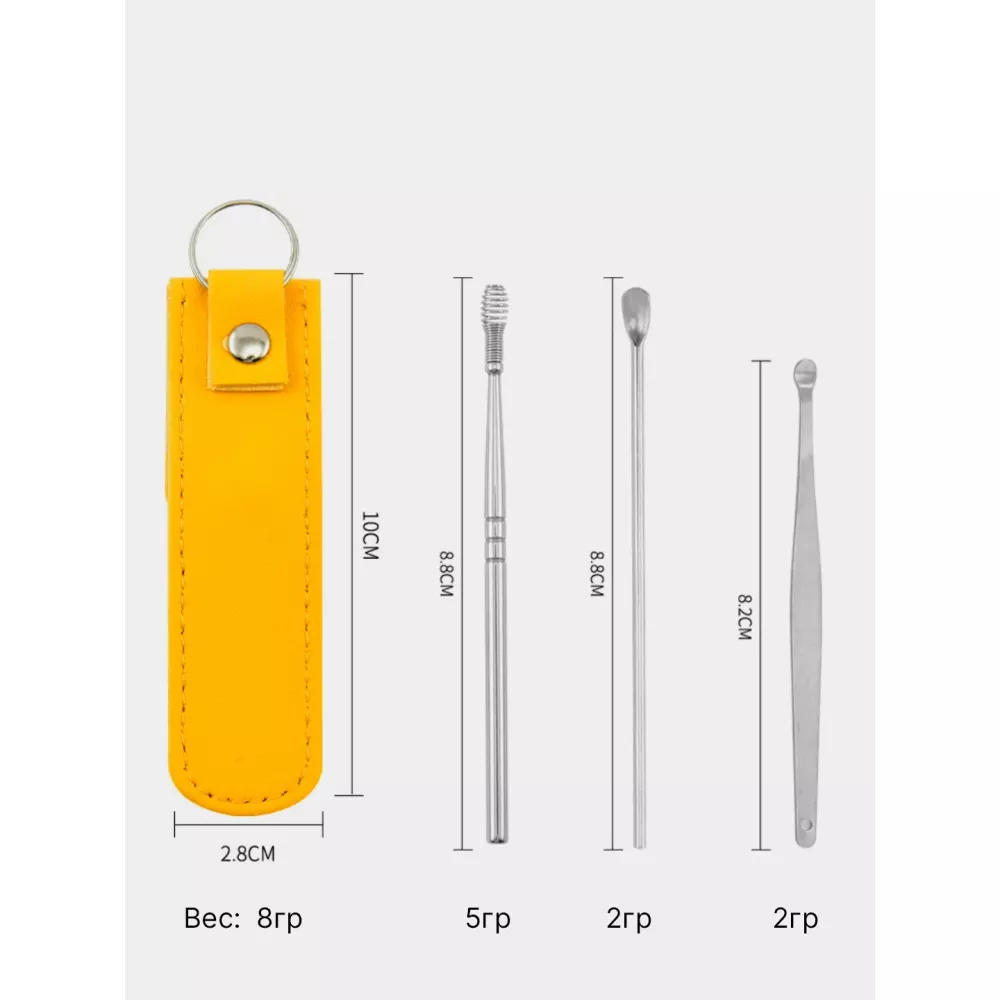 Компактный набор с чехлом для инструментов в комплекте. Инструмент изготовлен из высококачественной стали и подходит для любых видов стерилизации. Используется для чистки ушей в домашних условиях
