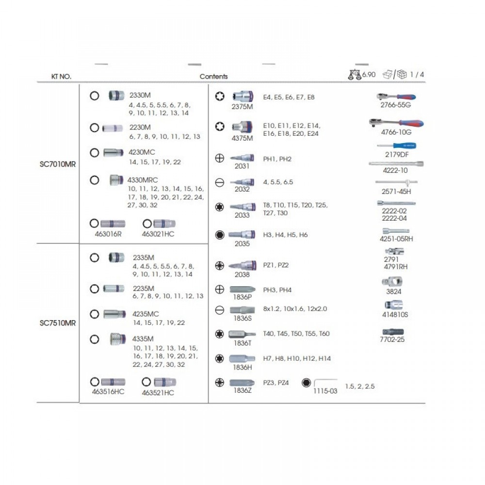 Комплектация набора King Tony (SC7510MR90):