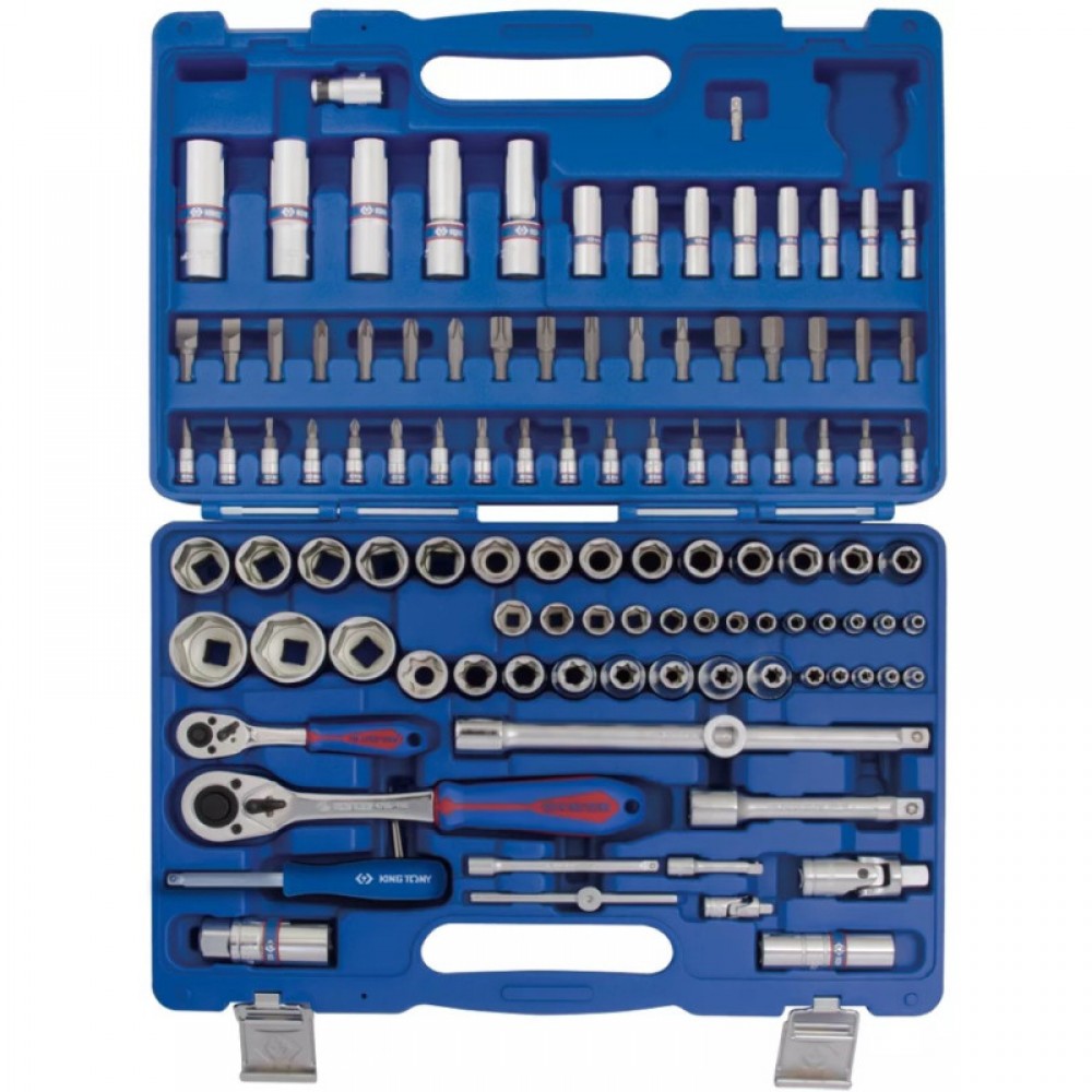Набор инструментов универсальный 109 единиц King Tony (SC7510MR90) – это комплект слесарных принадлежностей для станций ТО. Инструмент предназначен для работы с разными элементами крепежа – гайками, болтами, винтами, шурупами. Набор выгодно купить для ремонта легковых автомобилей европейских, японских и американских марок. Особенность комплекта в обилии всех востребованных инструментов по обслуживанию крепежа.