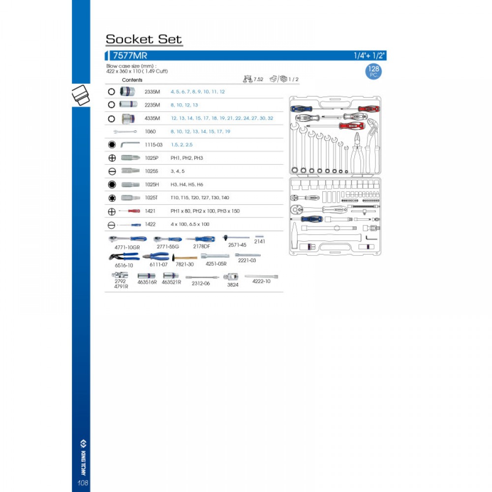 Набор инструментов 77ед. 1/4"+1/2" KINGTONY 7577MR