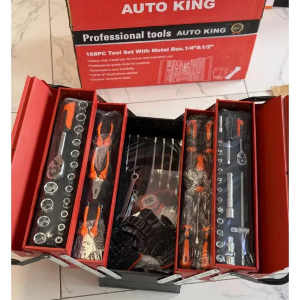 Набор инструментов в ящике 168 pcs — универсальный комплект для дома, гаража и автосервиса. Все инструменты выполнены из прочной хром-ванадиевой стали.