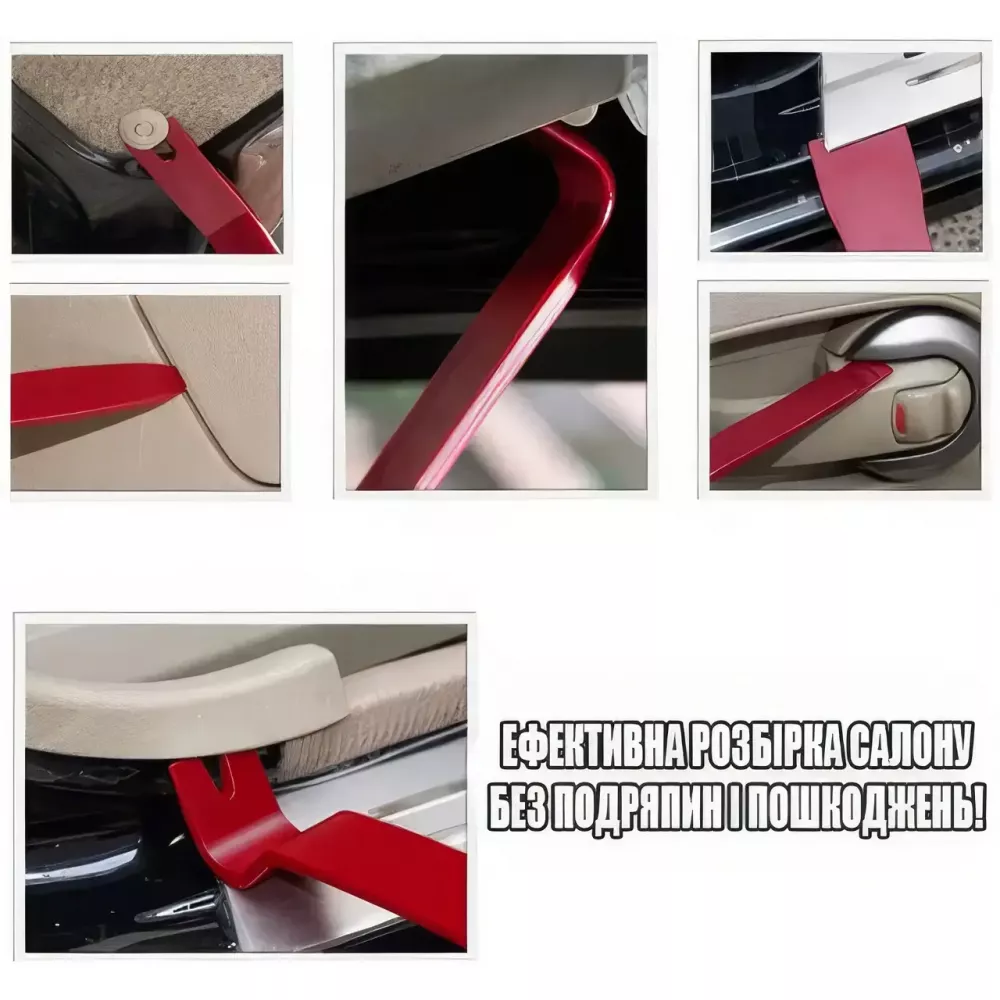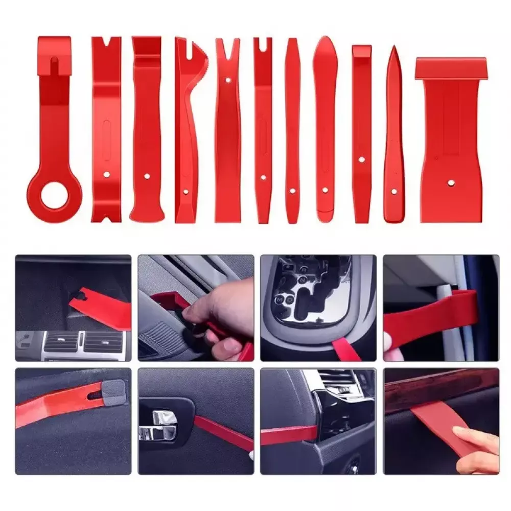 11 пластиковых съемников – для демонтажа панелей, клипс, обшивки салона без повреждений.