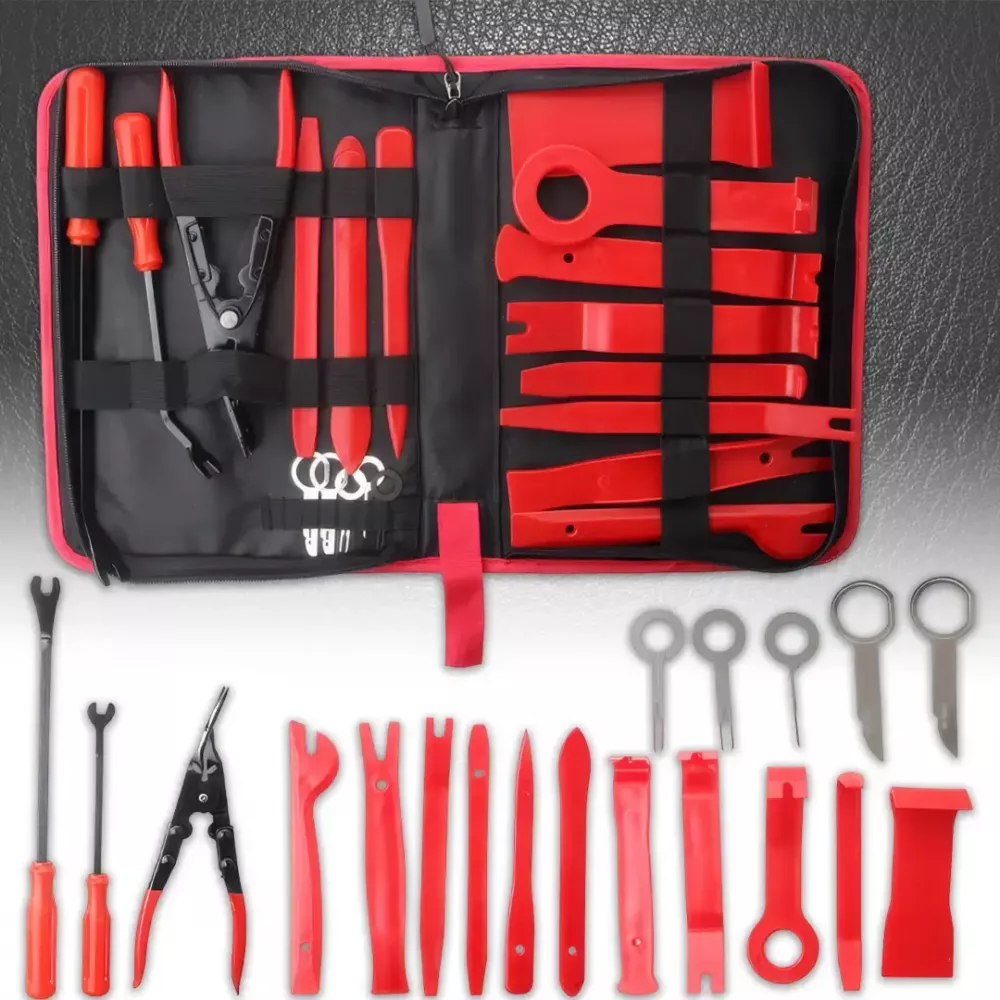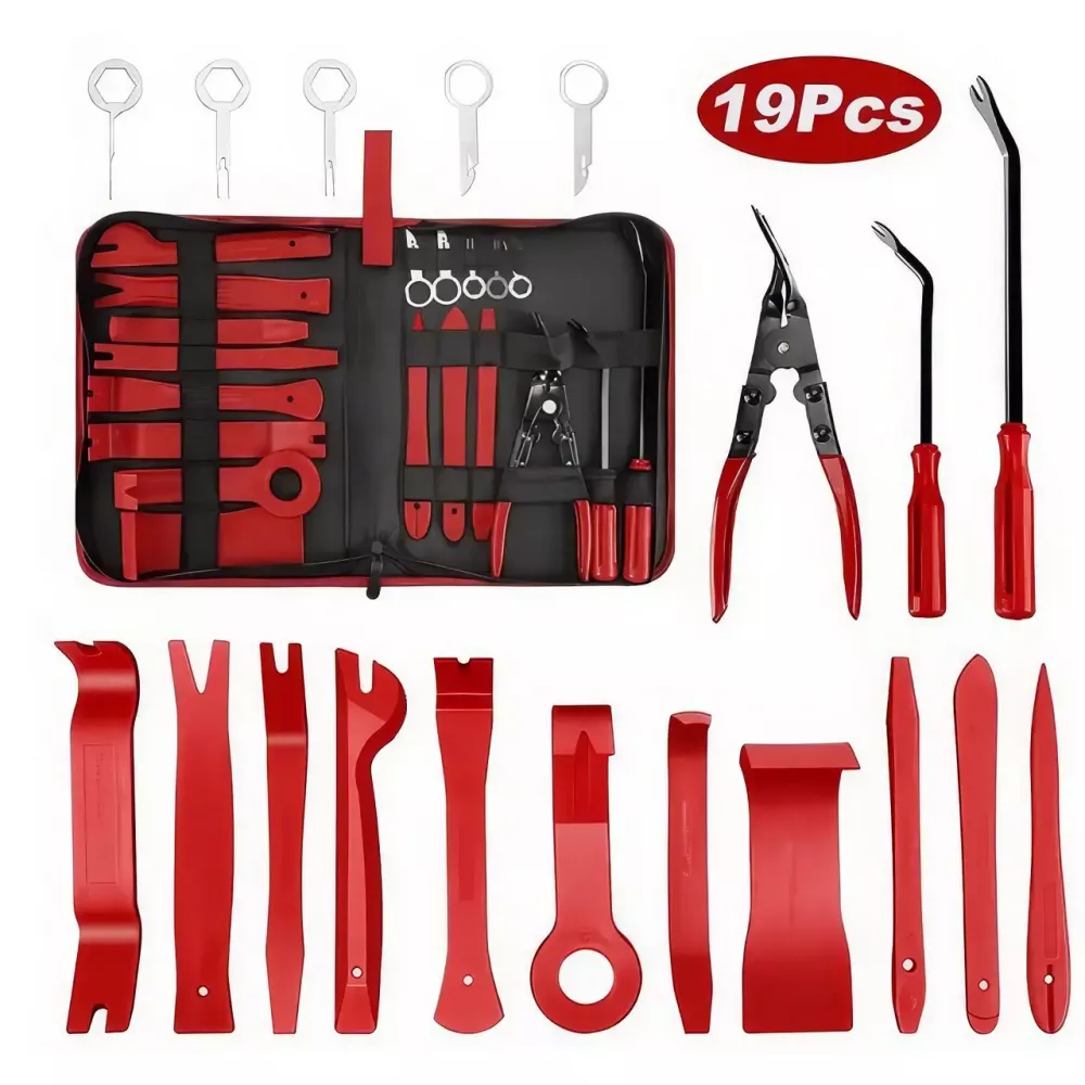 Материал: большинство инструментов изготовлены из прочного ABS-пластика, что предотвращает повреждение обшивки. Металлические инструменты имеют эргономичные ручки.